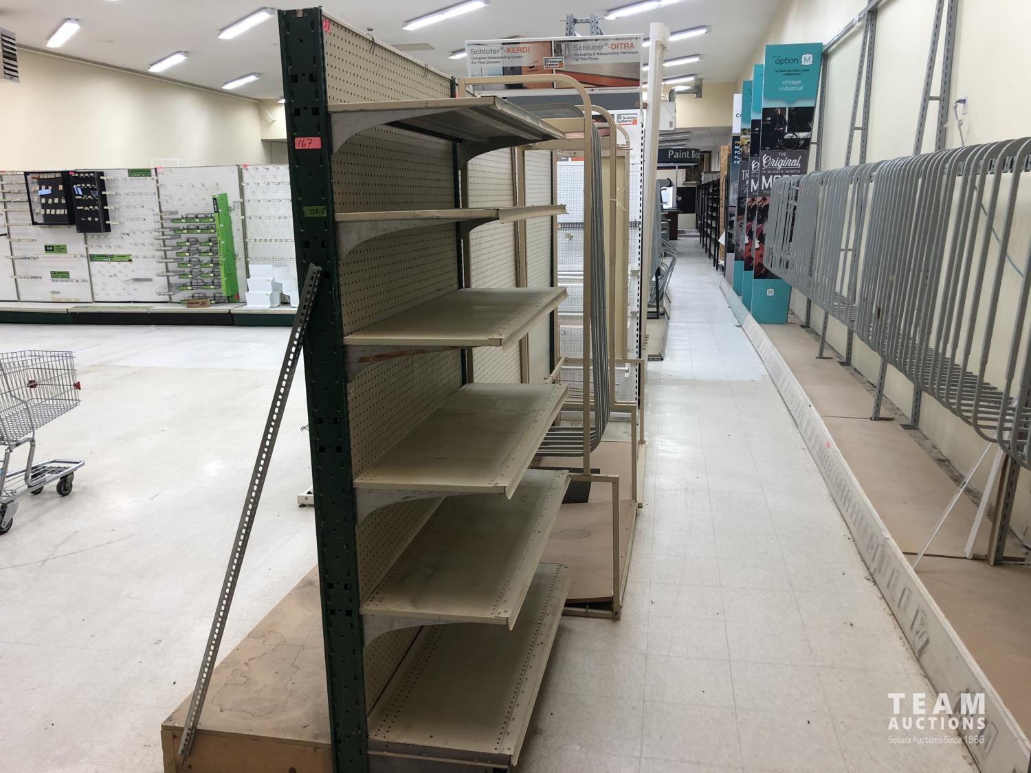 2296 Double Sided Display Shelf with Metal Racking and Pegboard End Cap