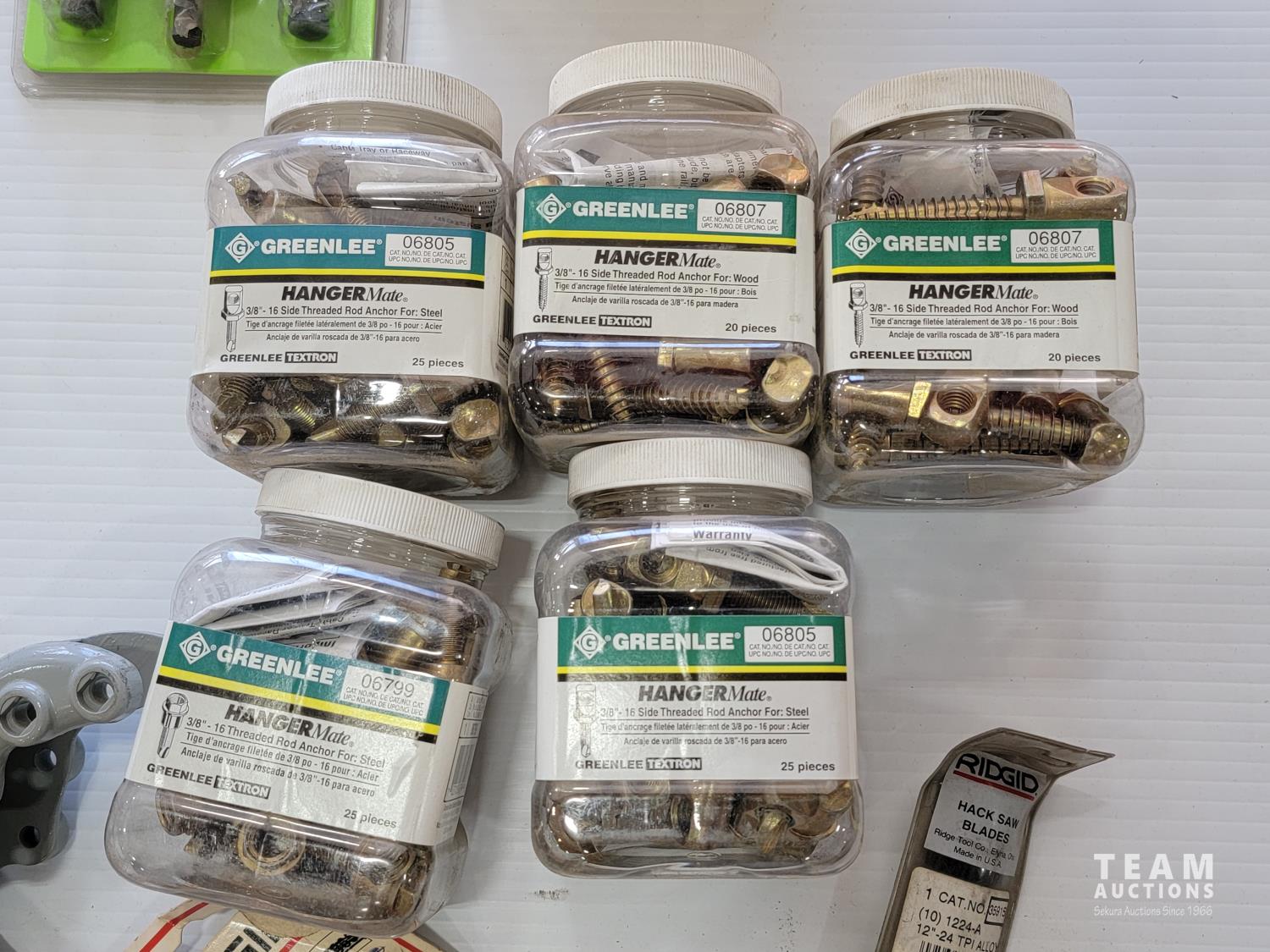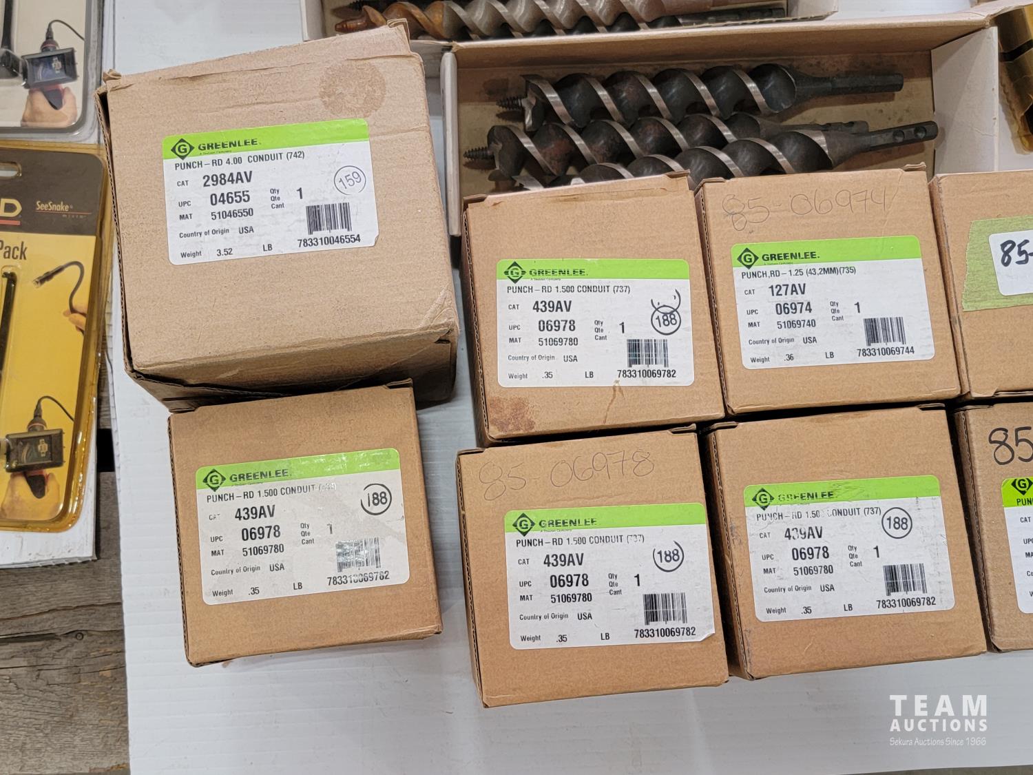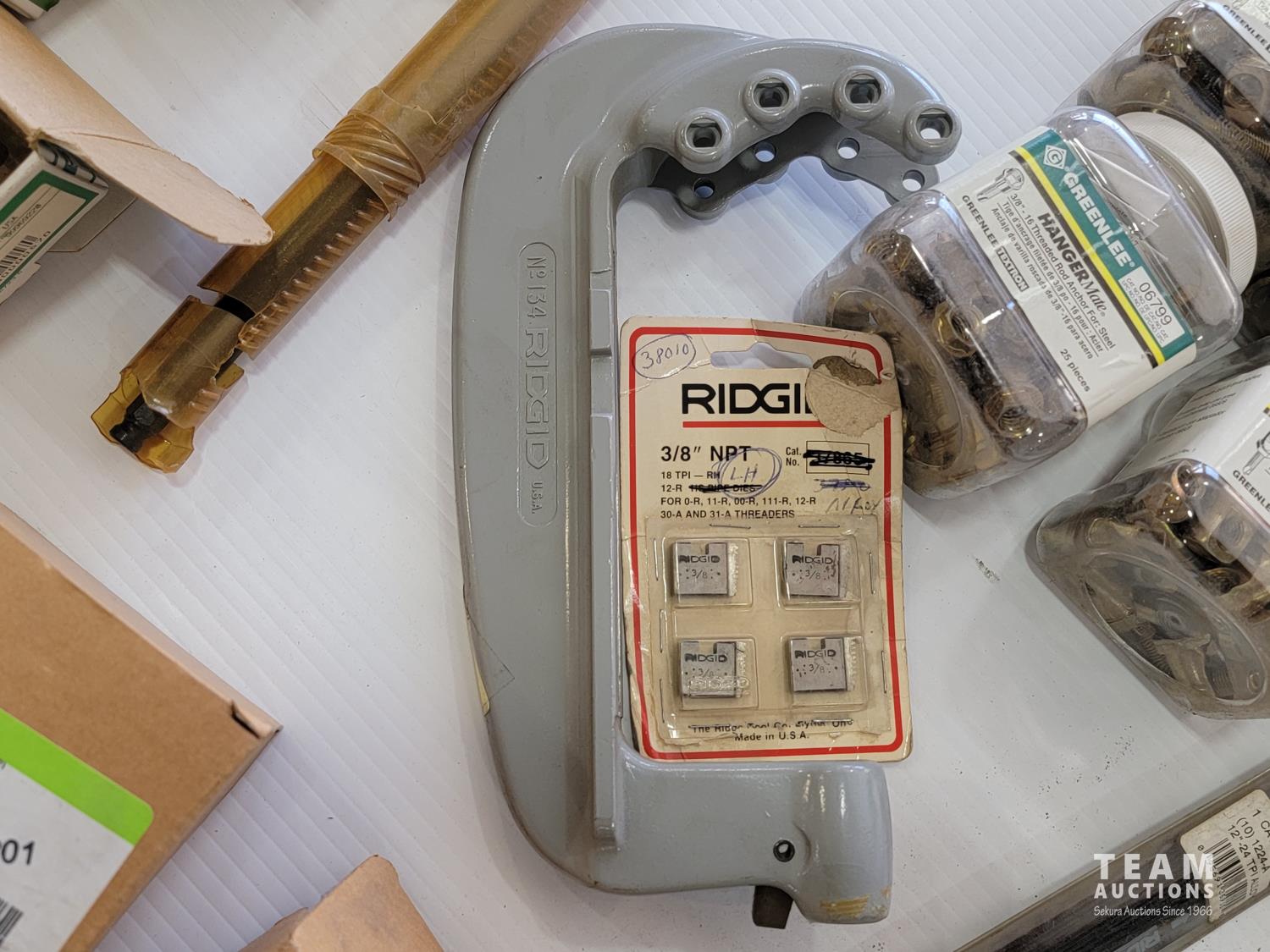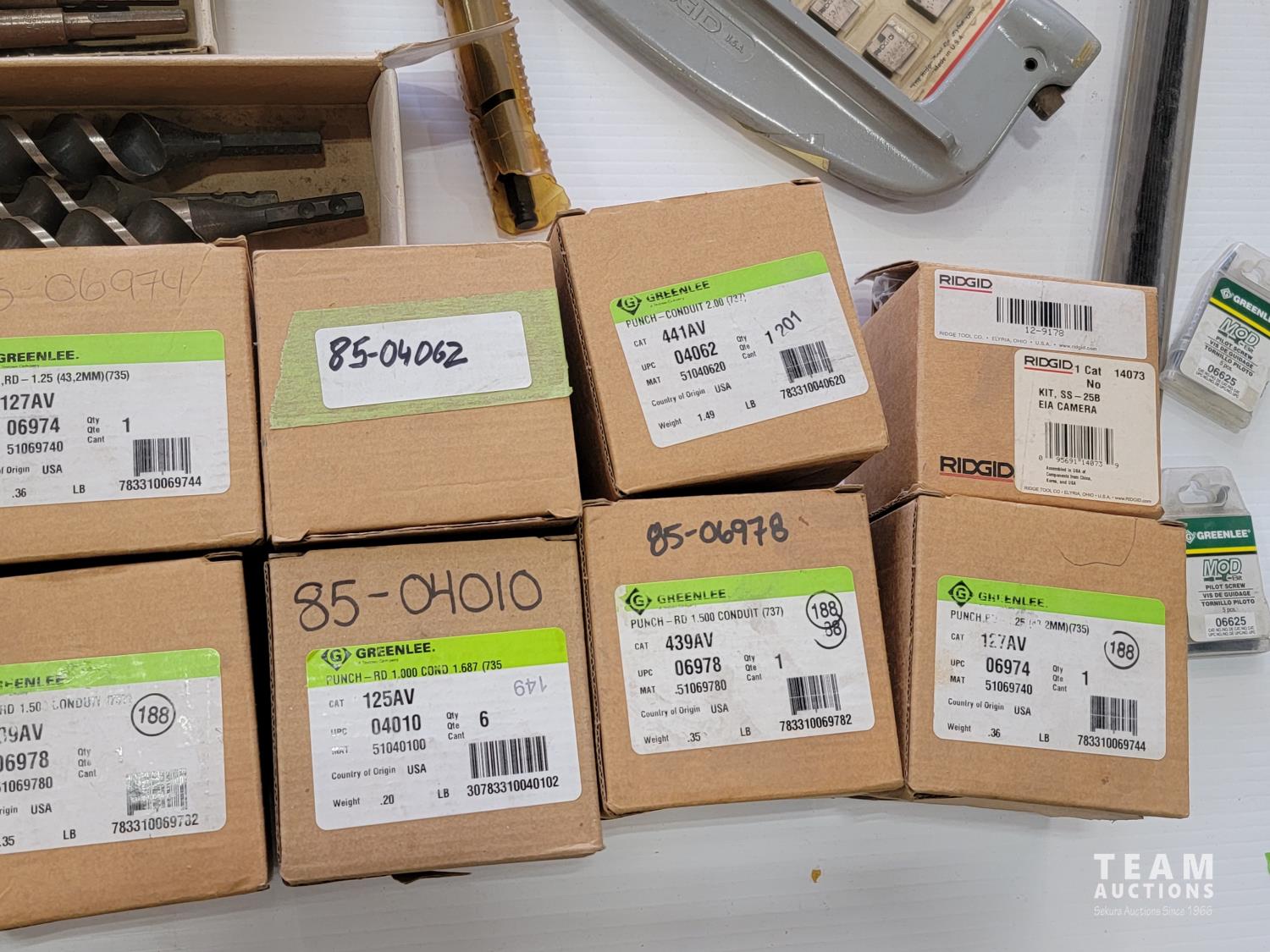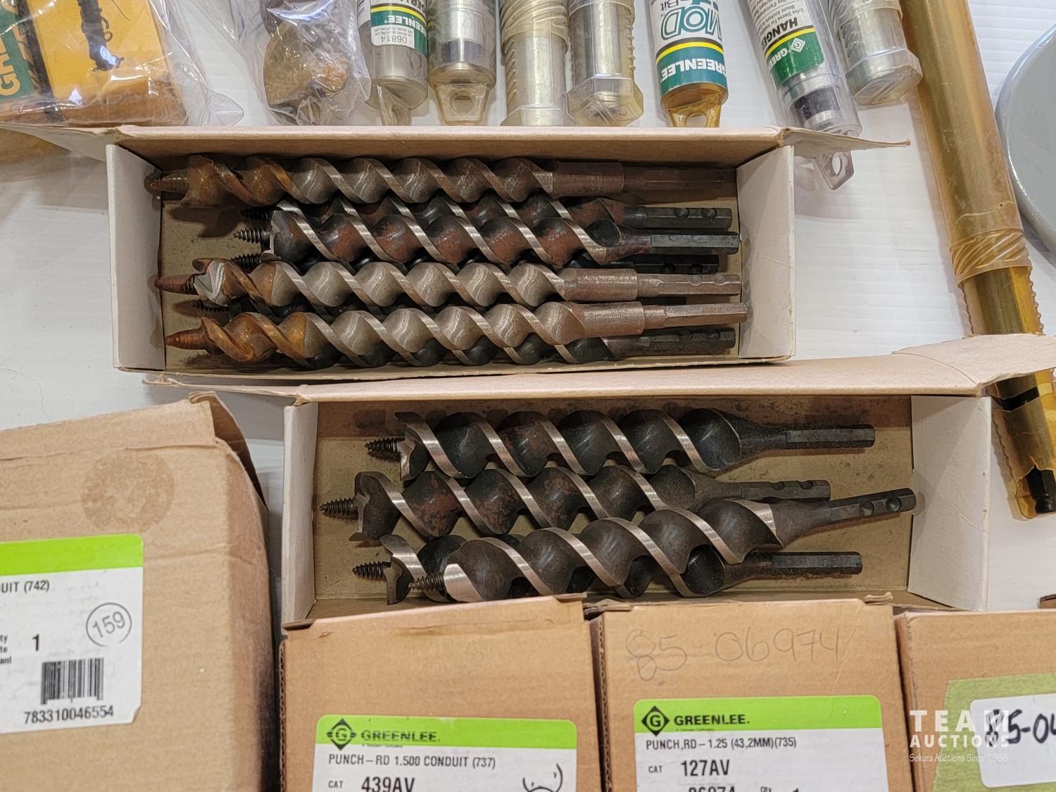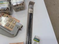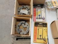 Various conduit punches, Ridgid accessory packs, hack saw blades, rod anchors