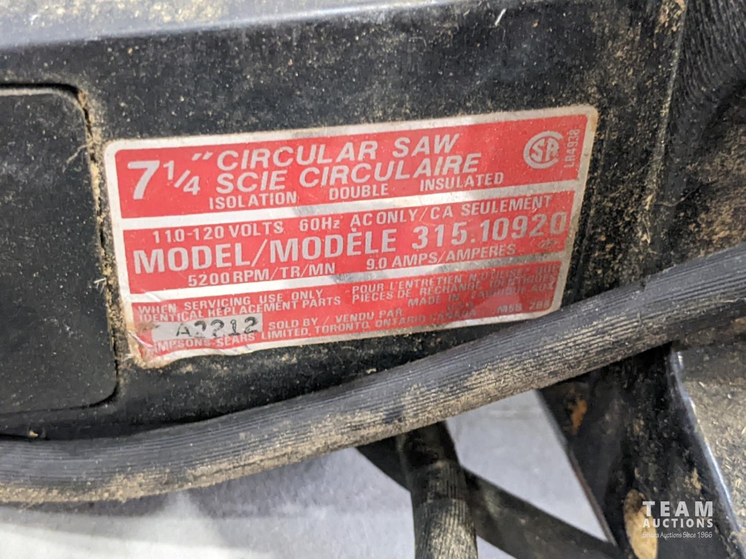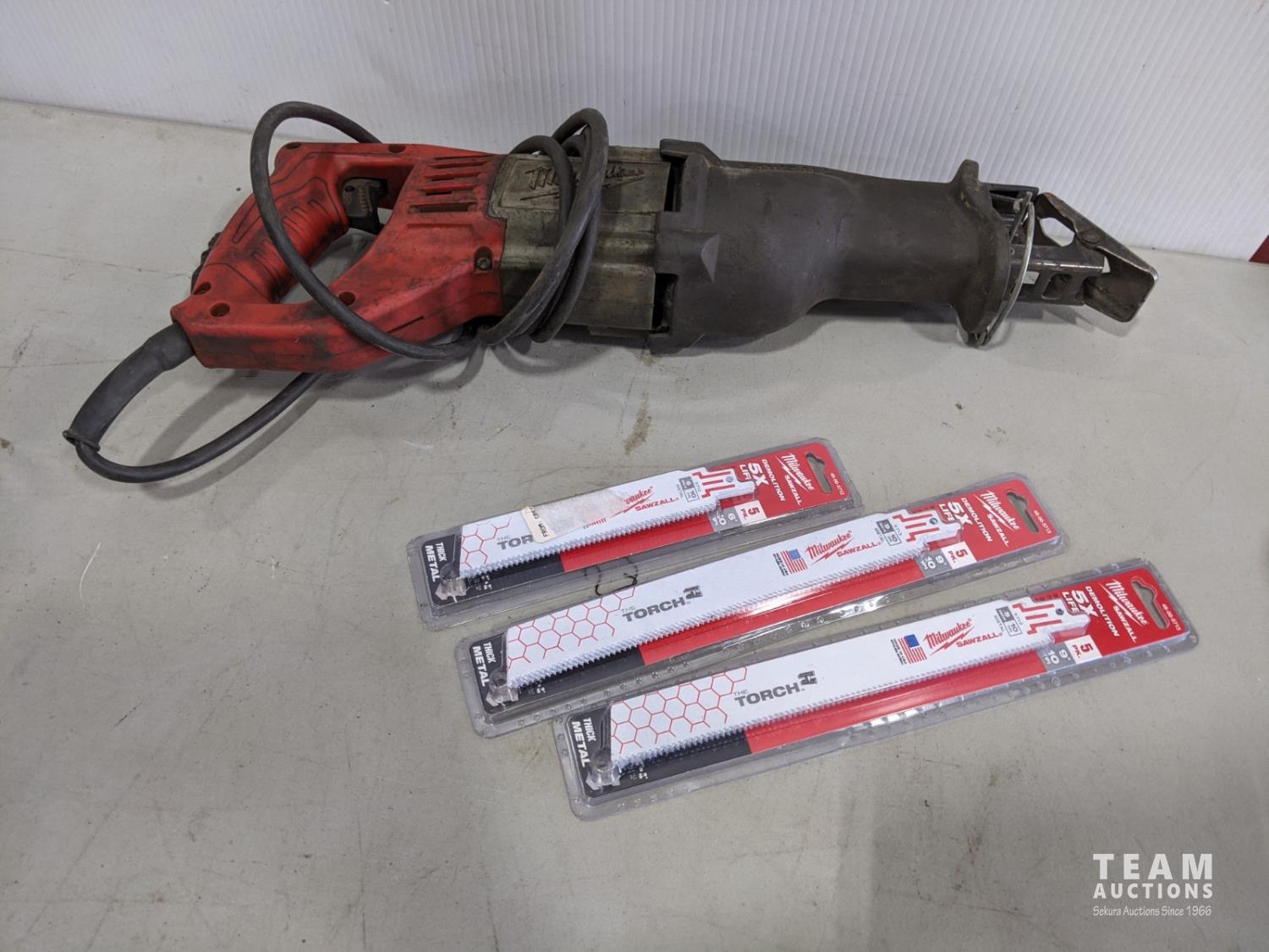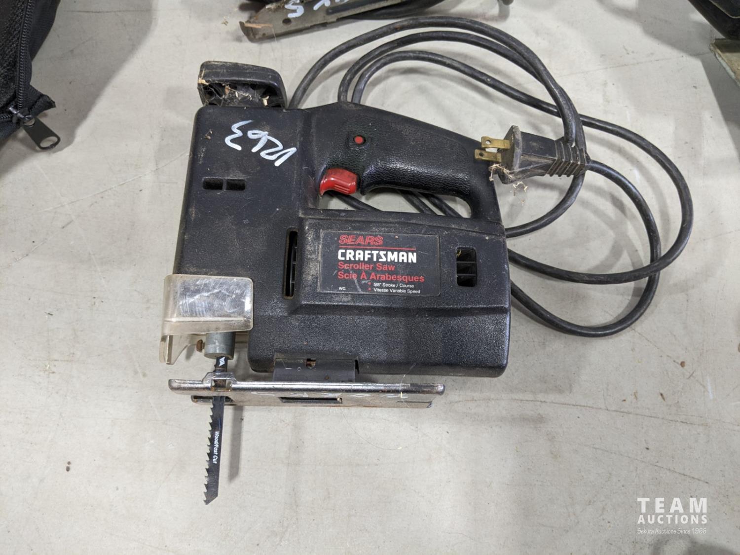 B&D jig saw, Craftsman jig saw, Craftsman 7-1/4 inch circular saw, King Canada 3/8 inch drill, Milwaukee sawzall with blades and bag