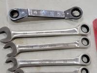 1/2 inch drive hex head socket set, (8) wrenches, 3/4 inch and 5/8 inch ratchet wrench