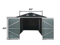 Double front doors, 7 ft 9 inch peak height, side entry door, 240 sq-ft floor space