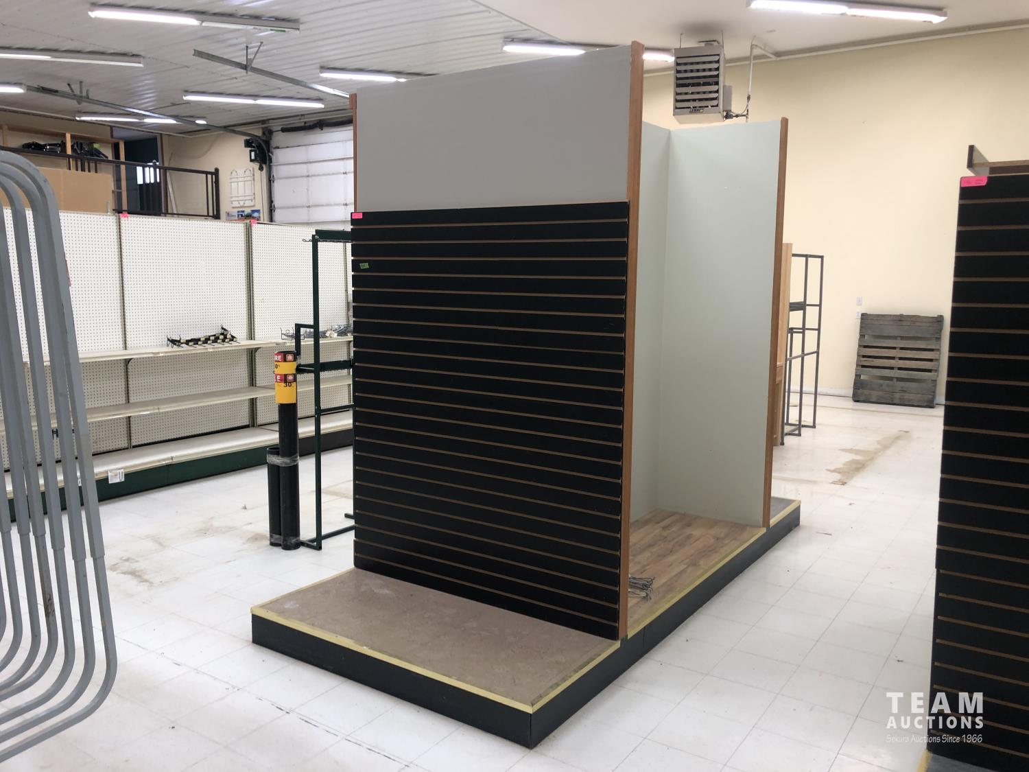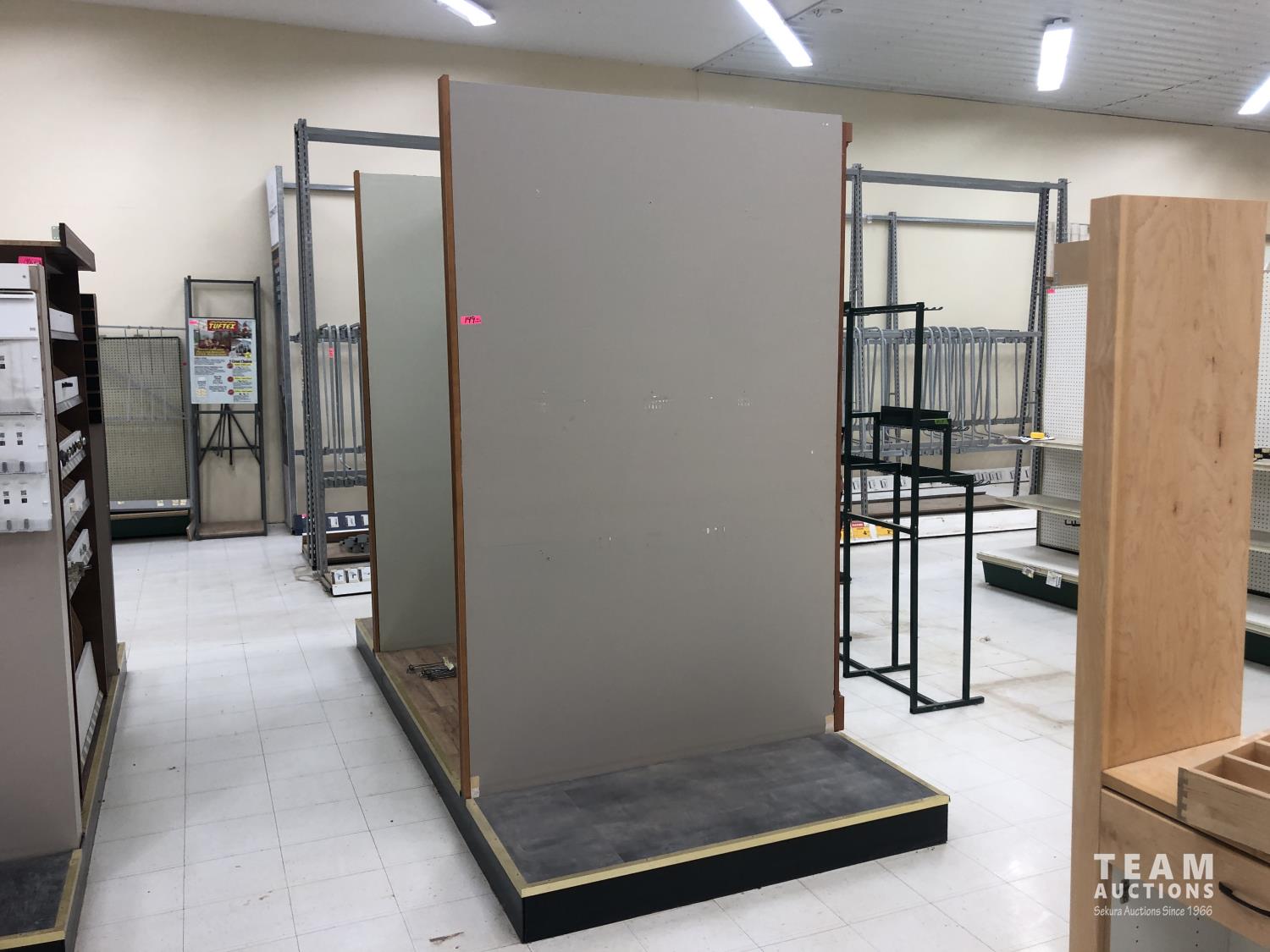 2296 Double Sided Display Shelf with Metal Racking and Pegboard End Cap