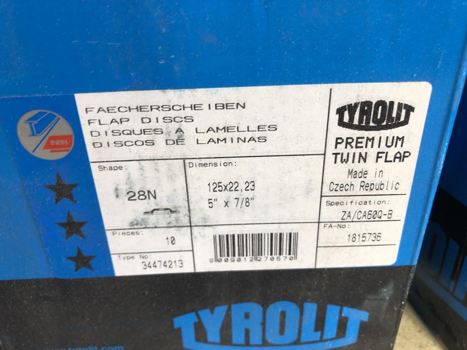 (4)10 inch x 1 inch grind stones, (25) 7 inch fibre discs, (10) 7 inch flap discs, (5) unitized wheels, (10) 6 inch cleaning discs, (40) 5 inch flap discs, (2) variety packs