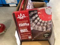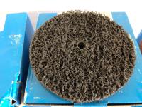3 inch cup brush, 5 inch grinding discs, 6 inch 40 grit flap discs, 6 inch cleaning discs, 6 inch wire wheels, 7 inch course fiber discs