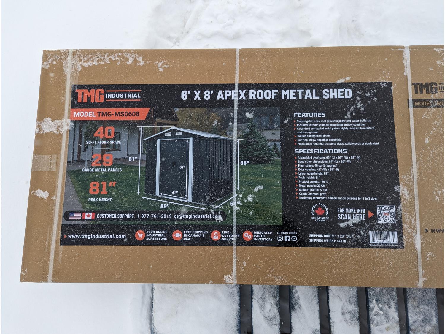 116 TMG Industrial MS0608 6 Ft X 8 Ft Galvanized Apex Roof Metal Shed (Unused)