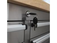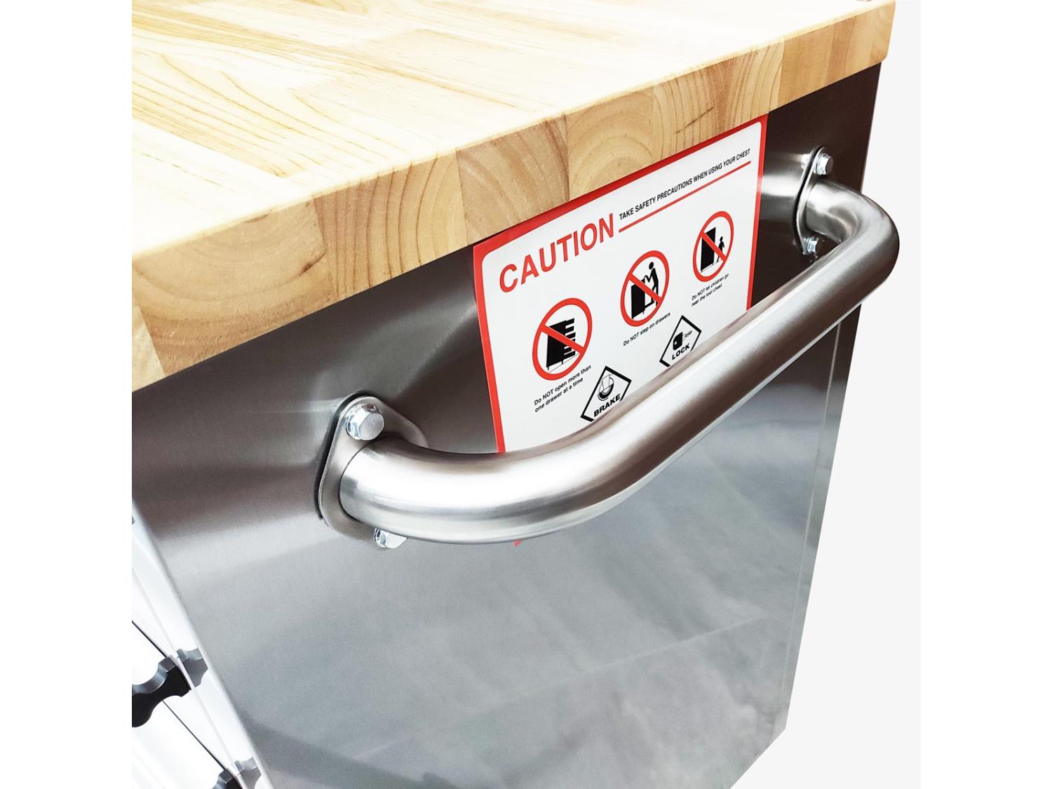 Rubberwood tabletop, 24 lockable drawers, locking wheels