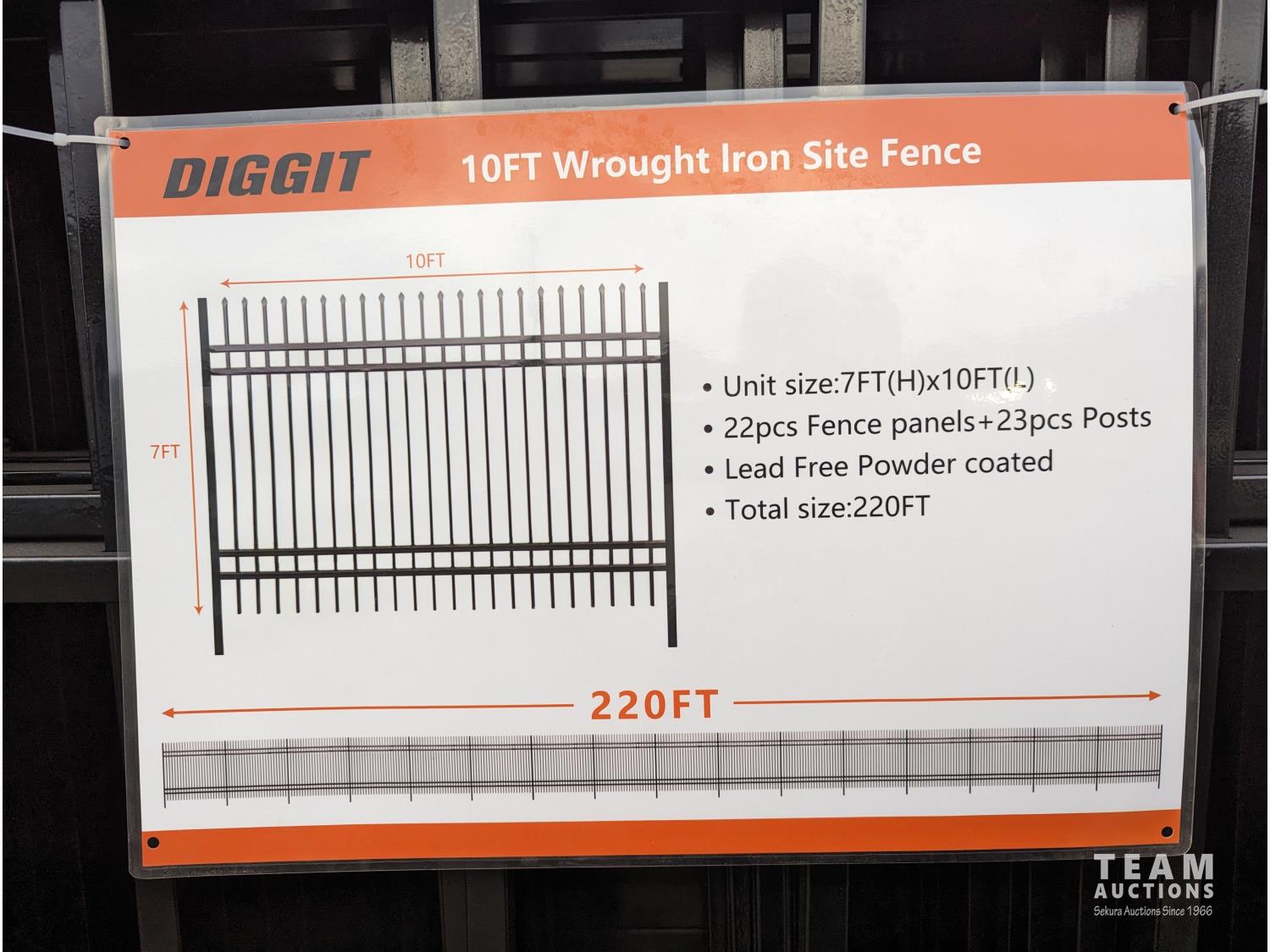 336 F10 (22) 2024 Diggit 10 Ft Wrought Iron Site Fence (Unused)