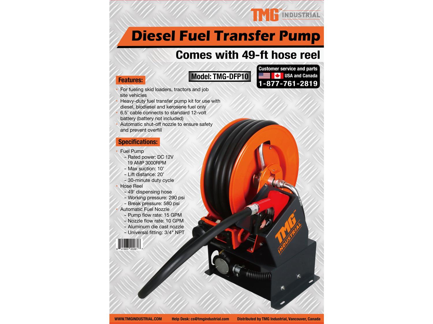 49 Ft hose, reel, auto shut off, DC 12 volt, 15 GPM