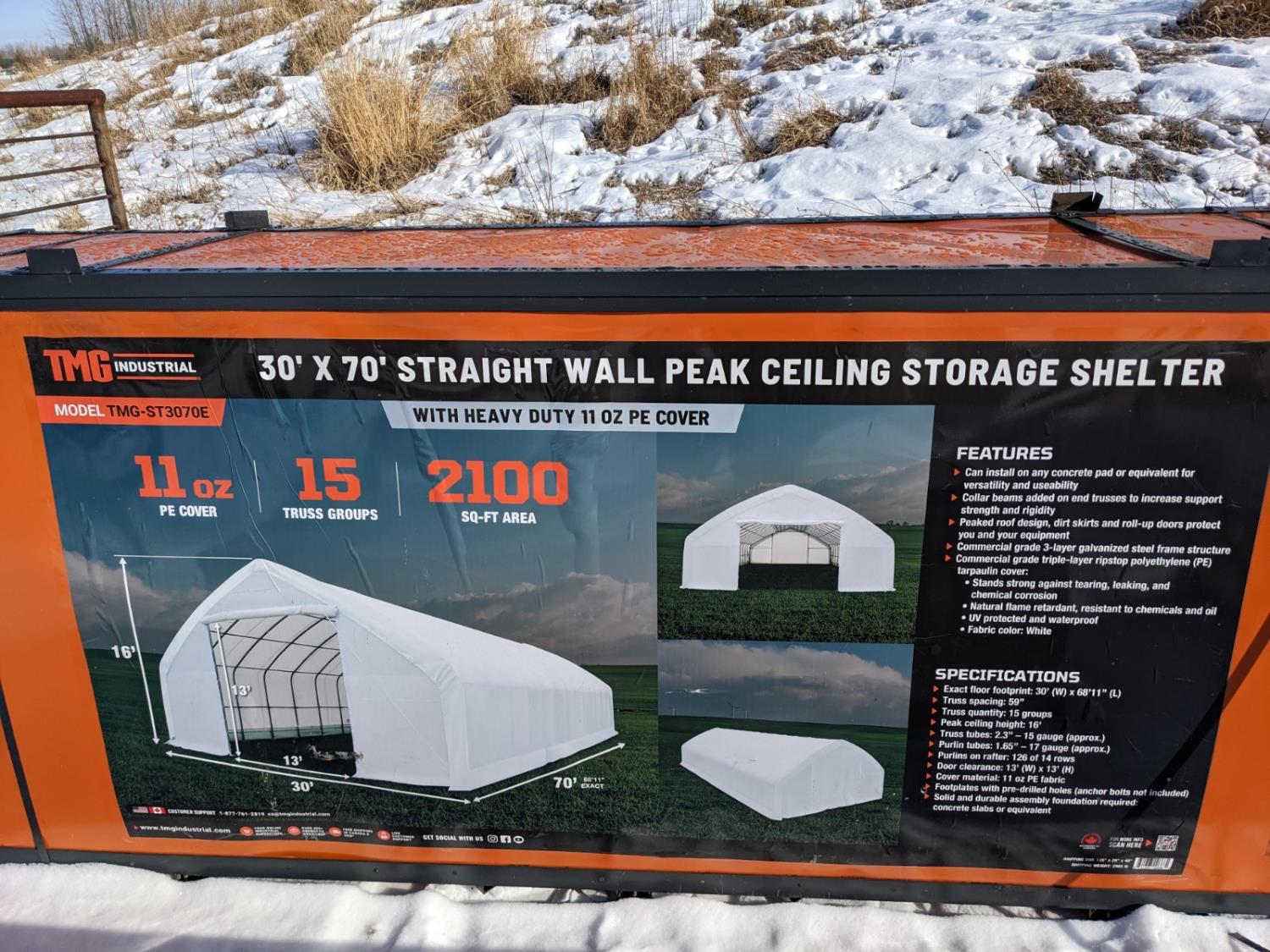110 TMG Industrial ST3070E 30 Ft X 70 Ft Straight Wall Storage Shelter (Unused)