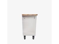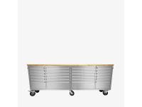 Rubberwood tabletop, 24 lockable drawers, locking wheels