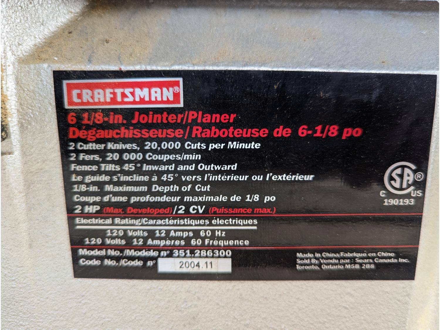1126 Craftsman 6-1/8 Inch Jointer/Planer C1