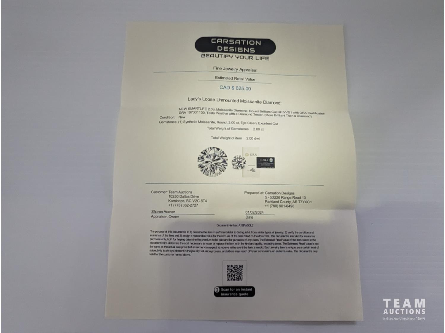 1006 Smartlife Moissanite 8.0 mm 2.0 Carat Round Cut Diamond C4 (Unused)