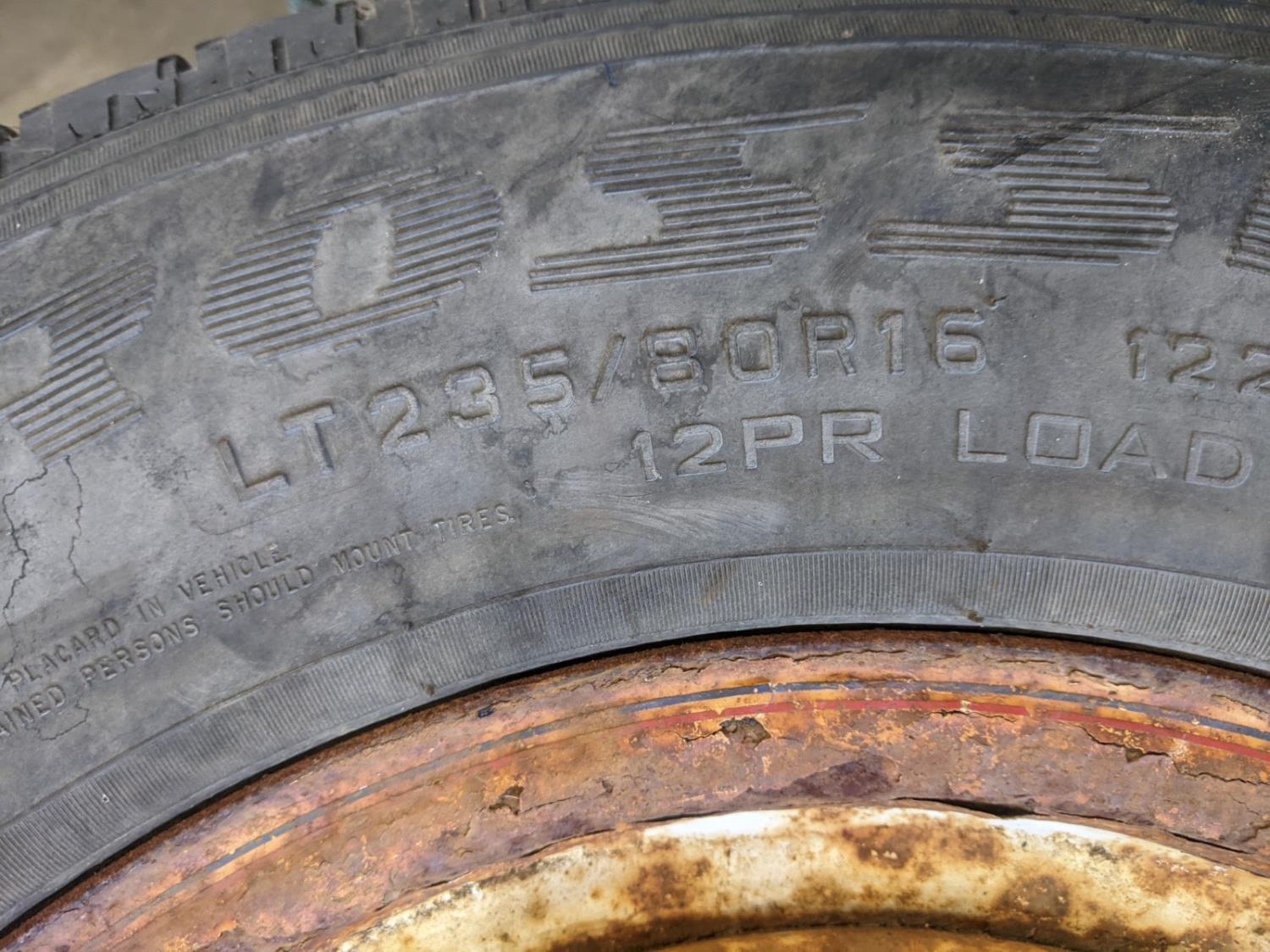 1934 (1) Goodyear 11L-15 Implement Tire On 6 Bolt Rim and (1) Crosswind L780 235/80R16 On 8 Bolt Rim