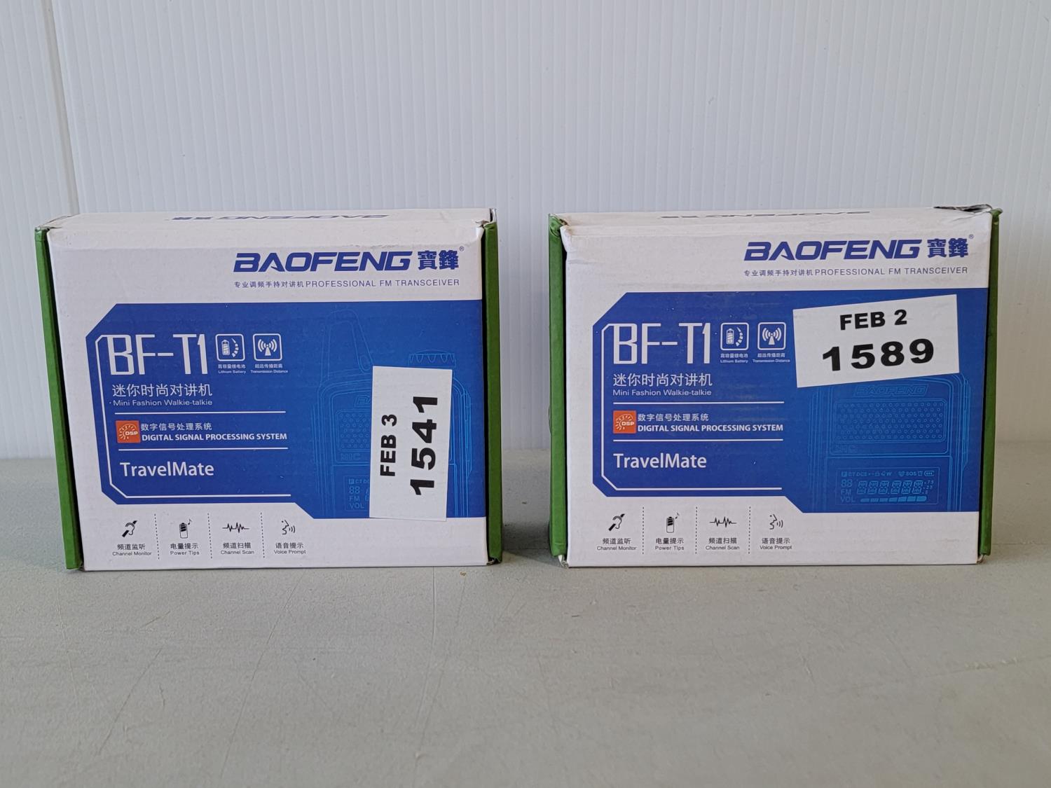 1485 (2) Baofeng FM Transceiver Mini Walkie Talkies (Unused)