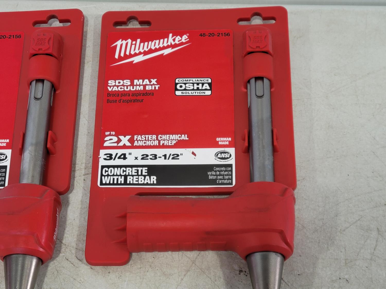 1543 (2) Milwaukee 3/4 Inch X 23-1/2 Inch SDS Max Vacuum Bits (Unused)