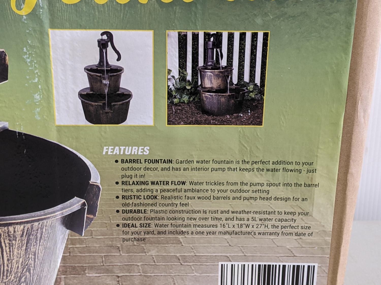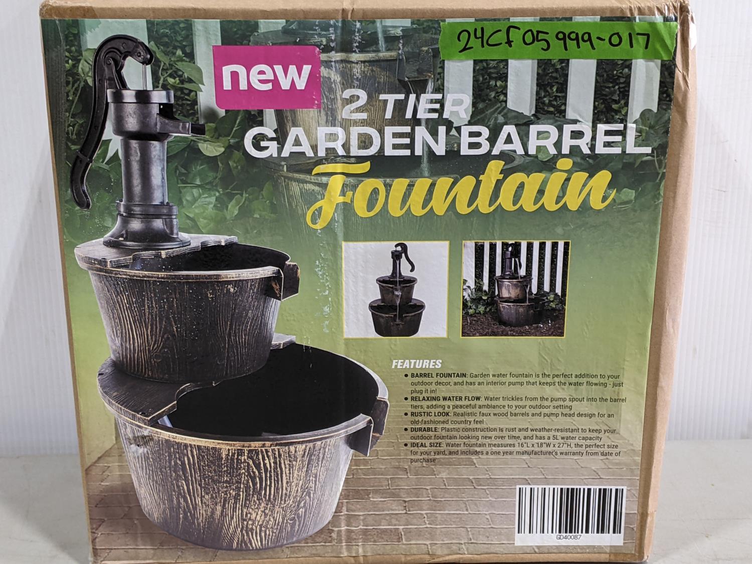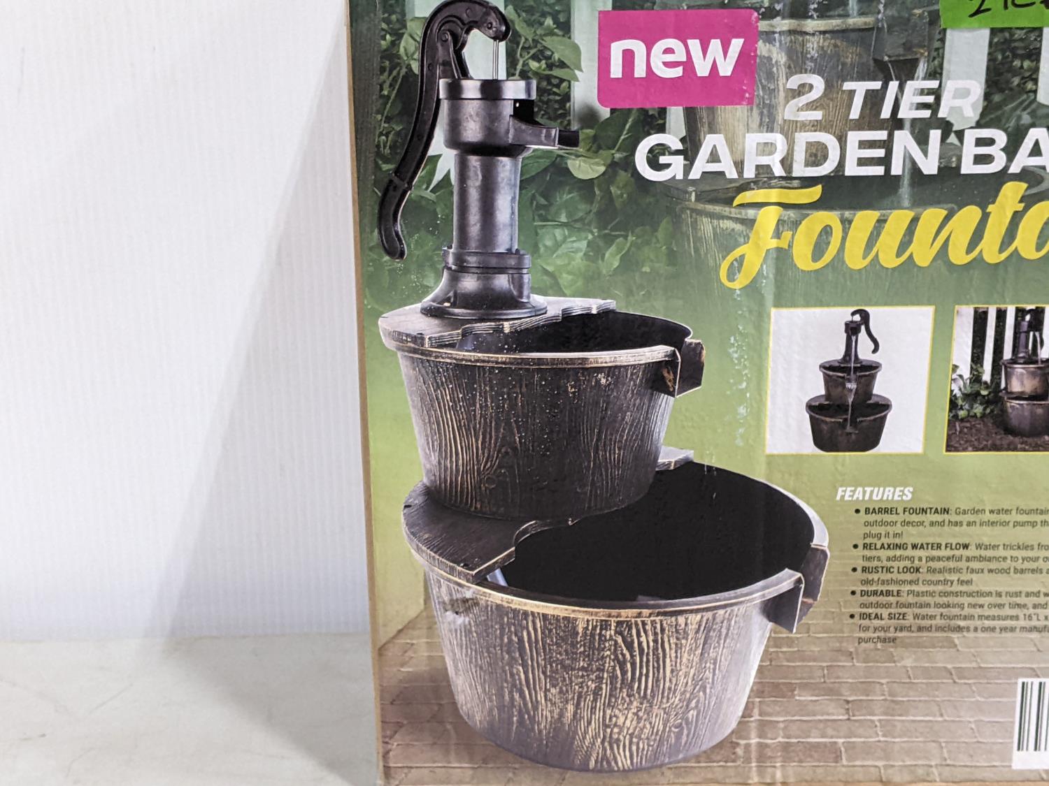 1396 2 Tier Garden Barrel Fountain (Unused)
