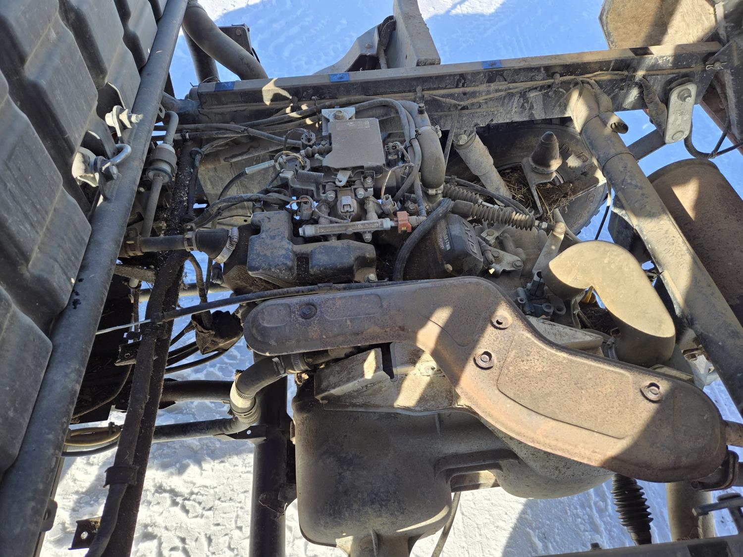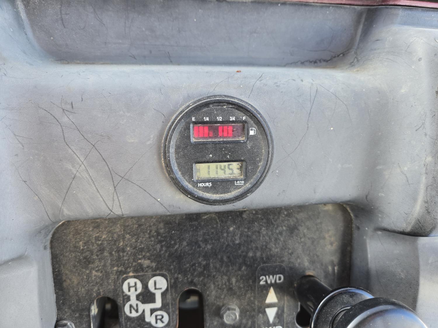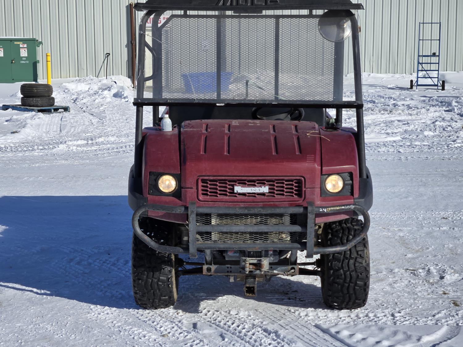 Kawasaki twin cylinder liquid cooled gas engine, CVT transmission with high/low range, reverse, manual tilt box, power steering, front winch, two inch receivers on both ends, 23X11.00-10 tires