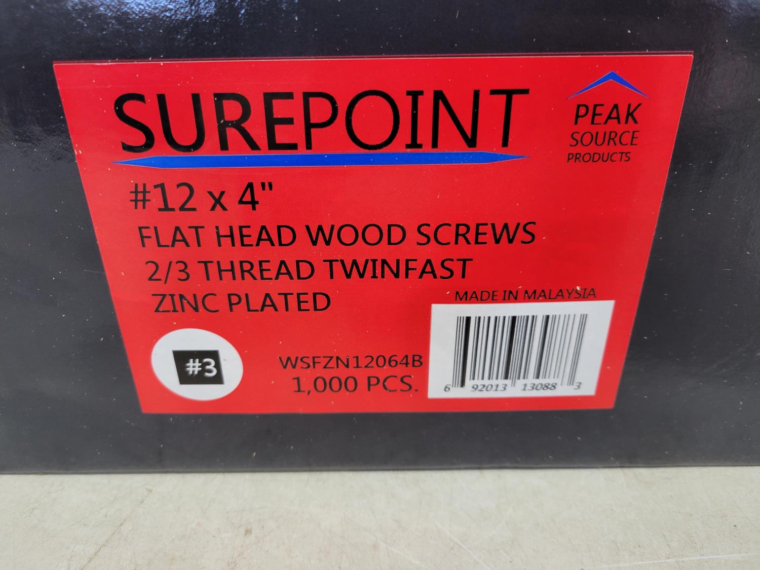 1325 (3) Cases of #12 X 4 Inch Flat Head Wood Screws and (100) Bar Tie Twisting Tools (Unused)