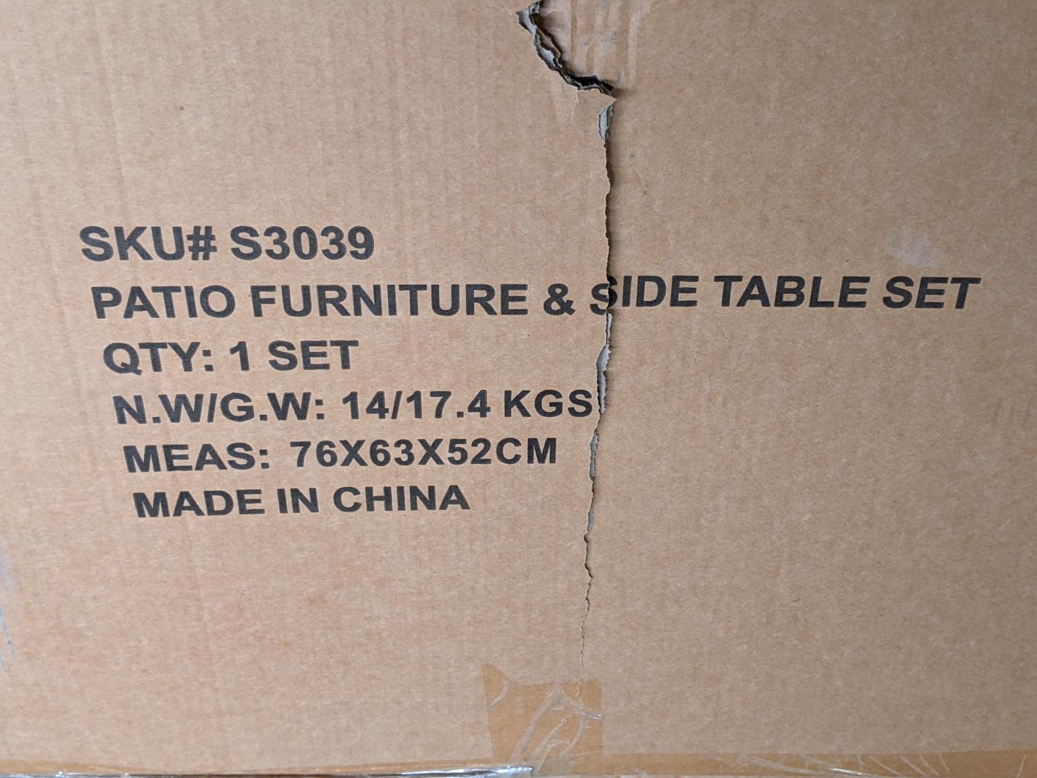 1654 3 Piece Patio Furniture Set (Unused)