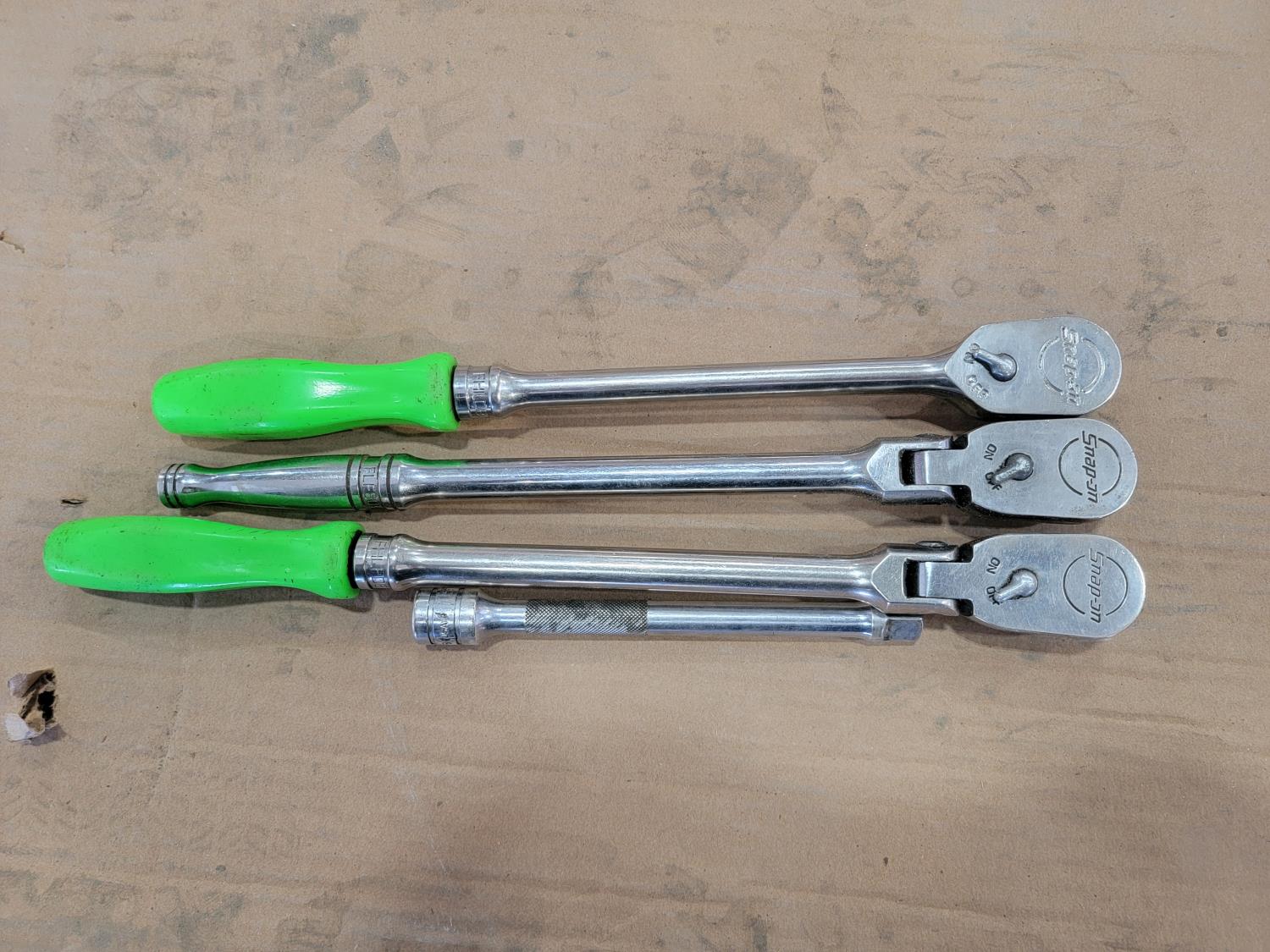 1567 (3) Snap-On 3/8 Inch Drive Ratchets and (1) Extension