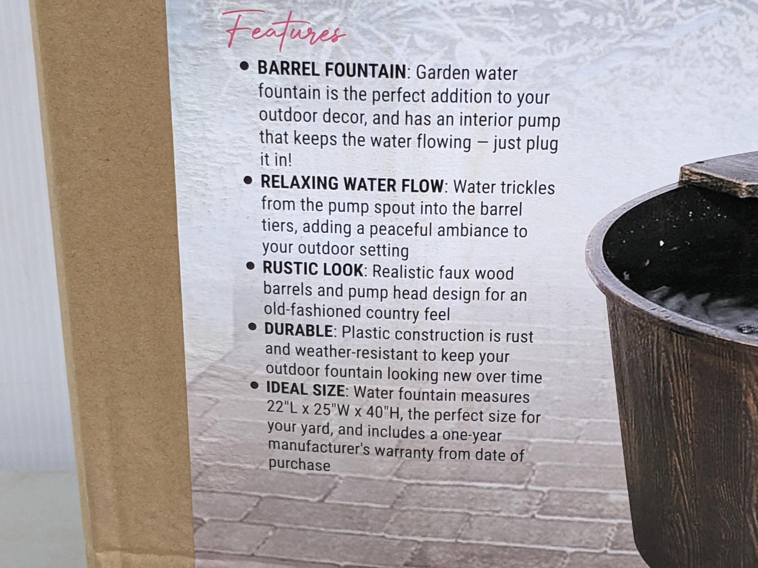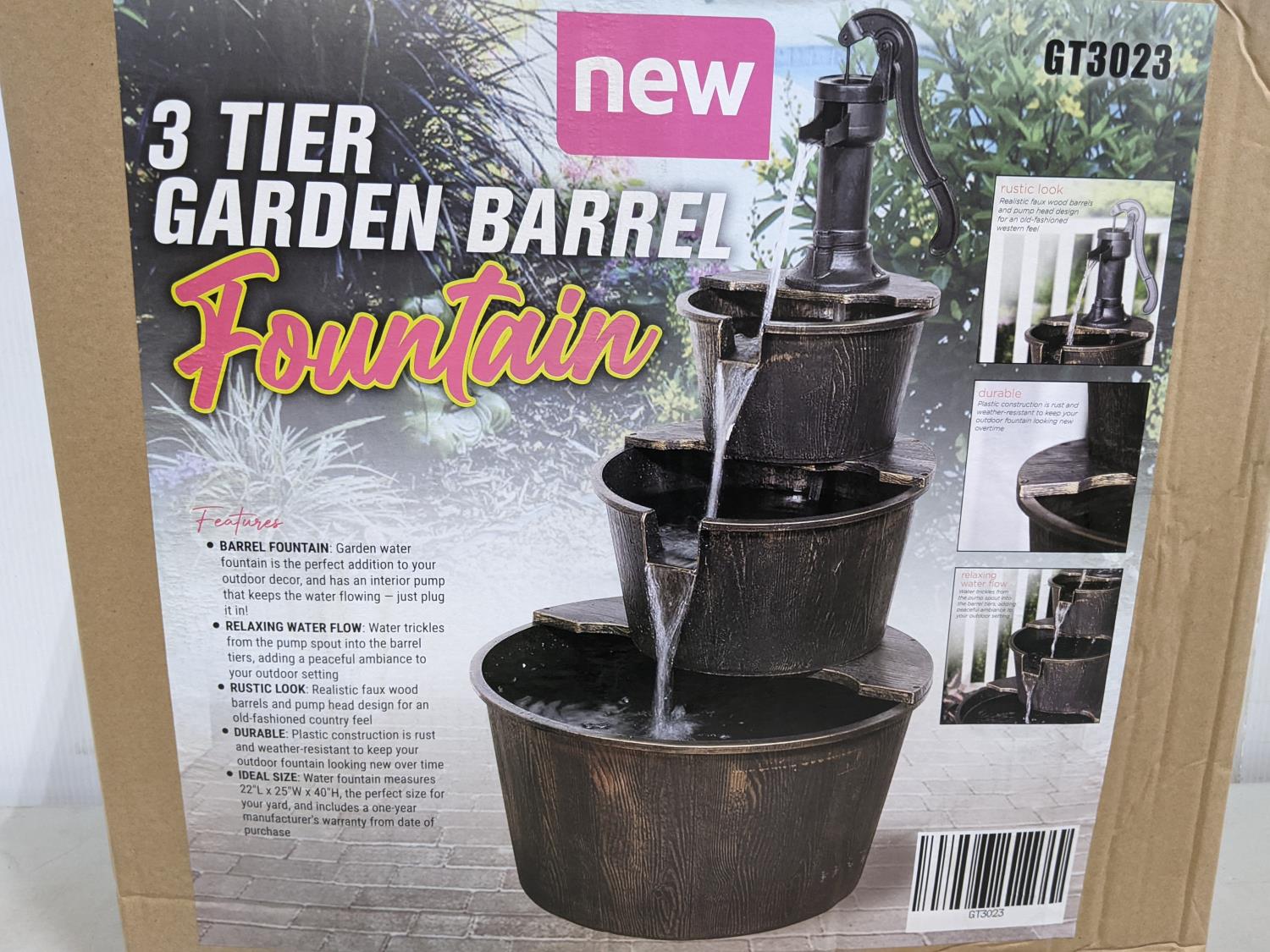 1371 3 Tier Garden Barrel Fountain (Unused)