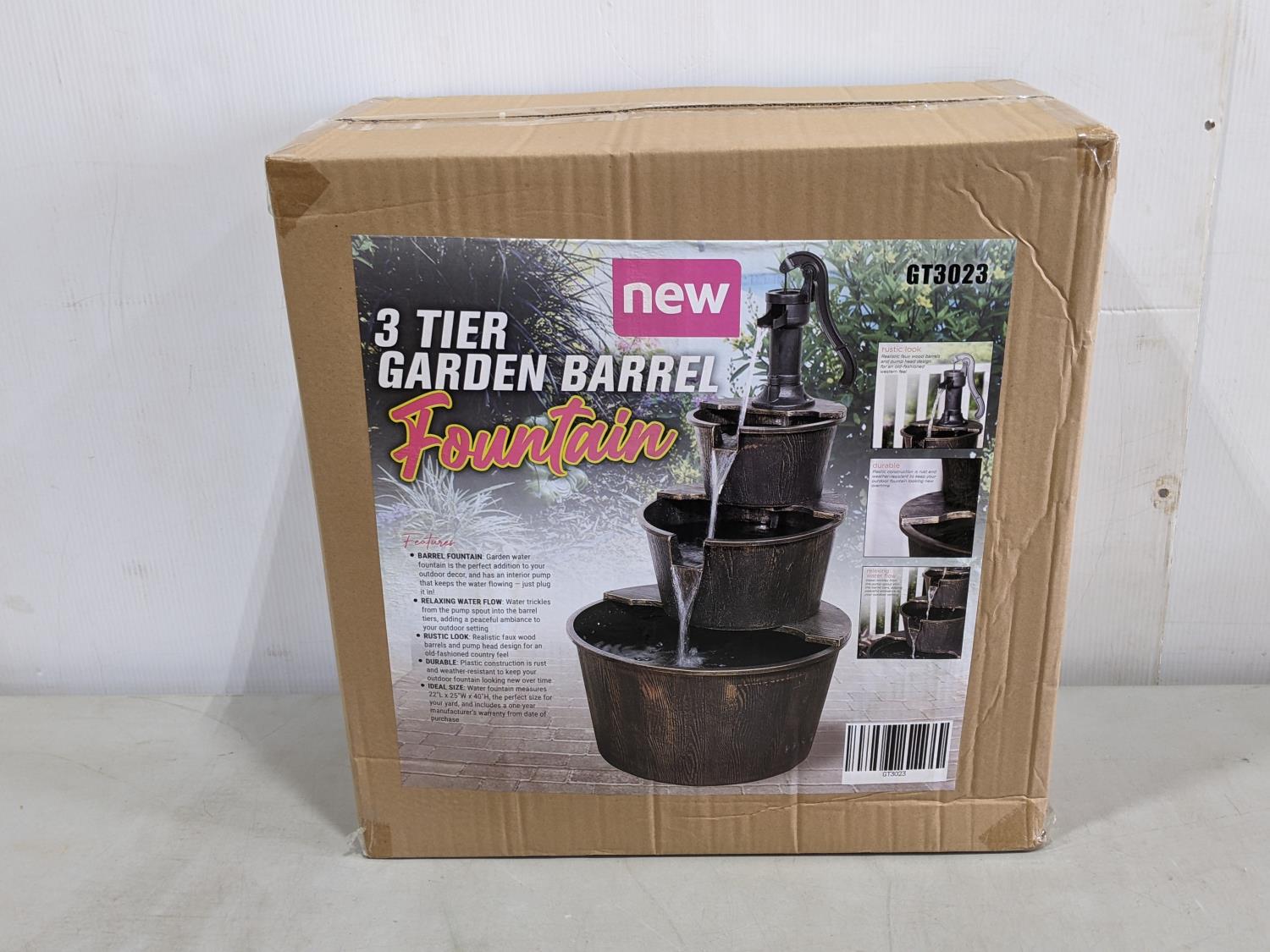 1372 3 Tier Garden Barrel Fountain (Unused)