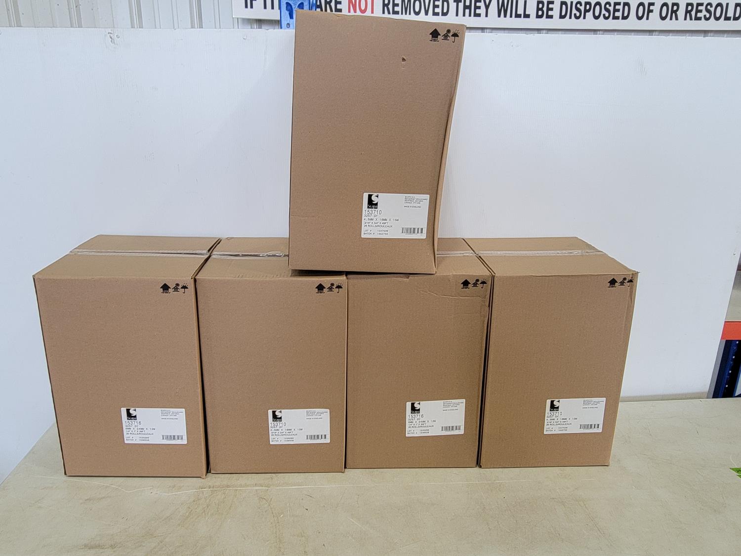 1097 (5) Boxes of 3/16 Inch X 3/4 Inch X 49 Ft Long Foam Tape (Unused)