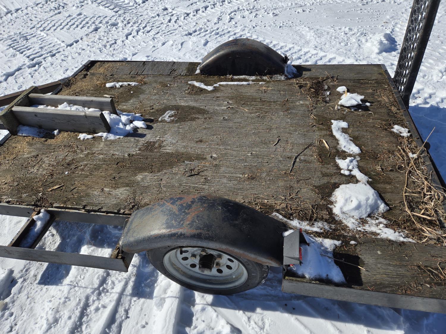 64 inch wide deck, wood deck, stand up ramps, ball hitch, 4.80-12 tires