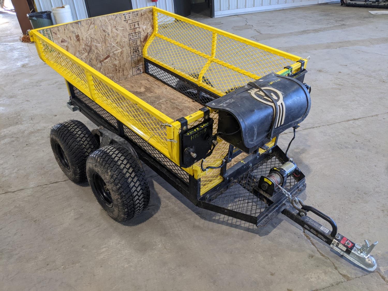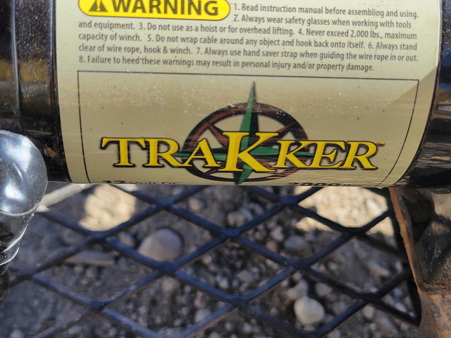 2000 lb Trakker winch, 12 V battery, 18x8.50-8 tires, 1-7/8 inch trailer coupler