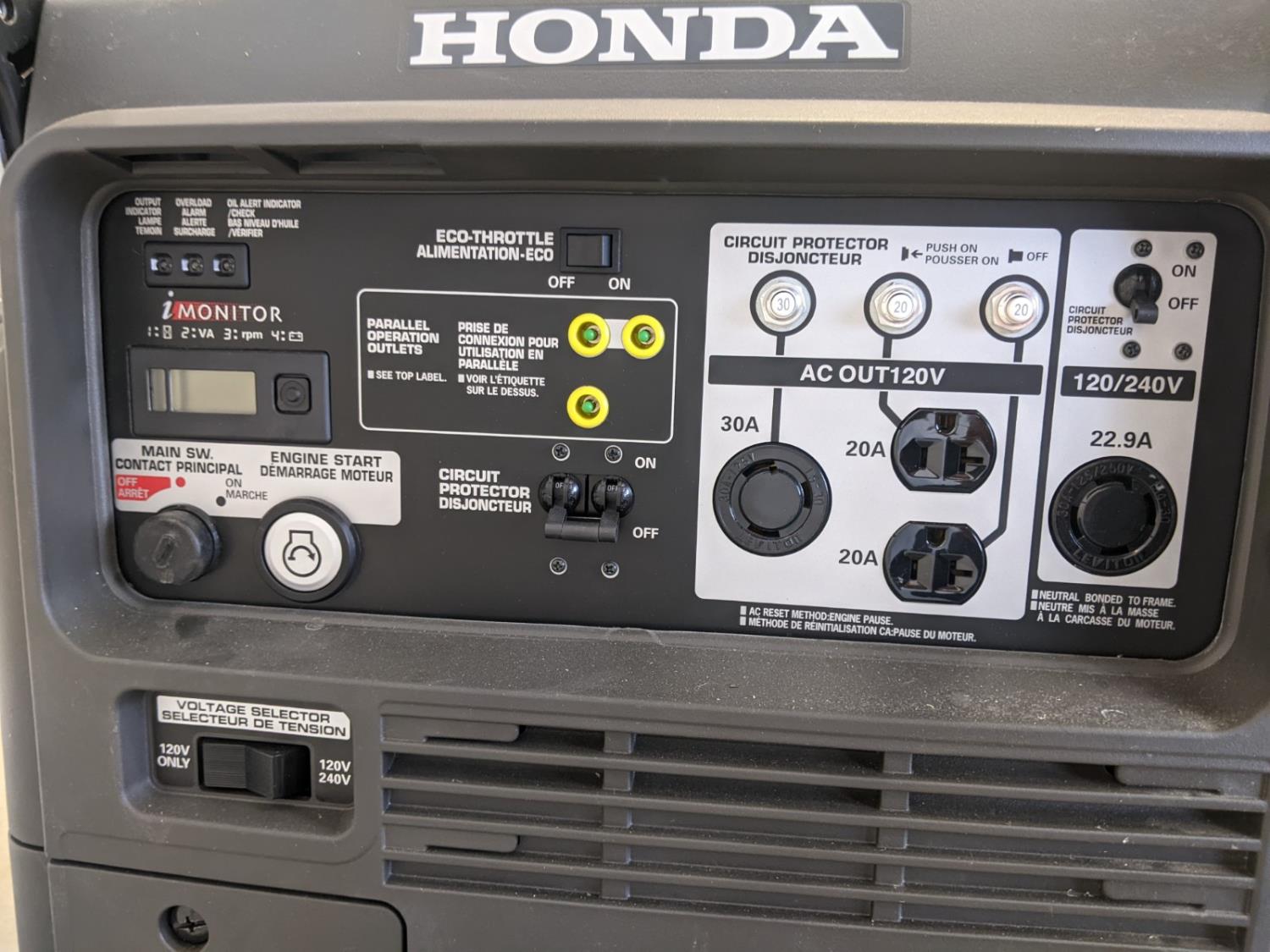 1244 Honda EU7000is 7000 Watt Gasoline Inverter Generator (Unused)