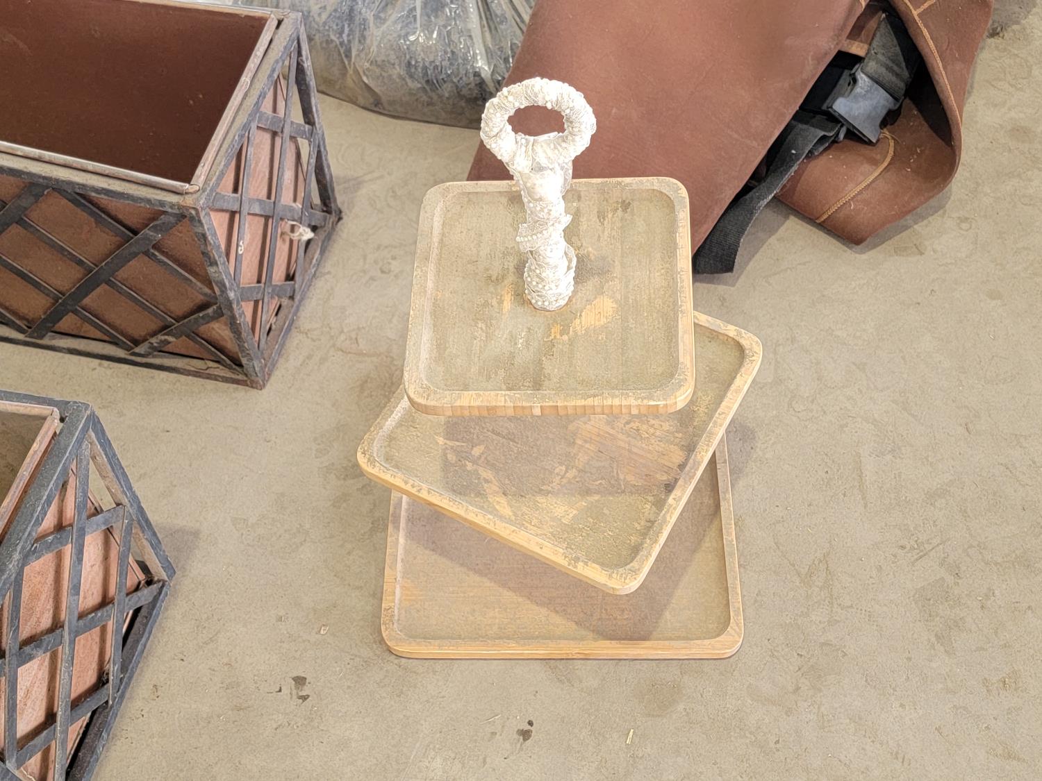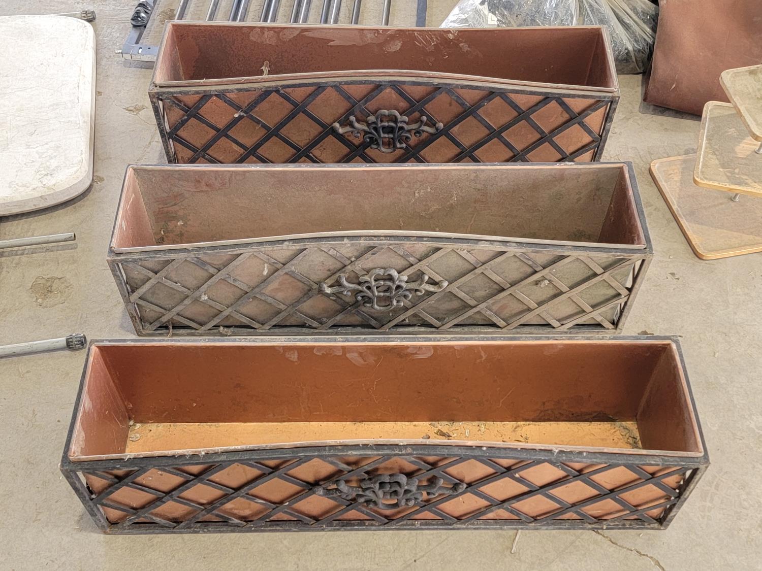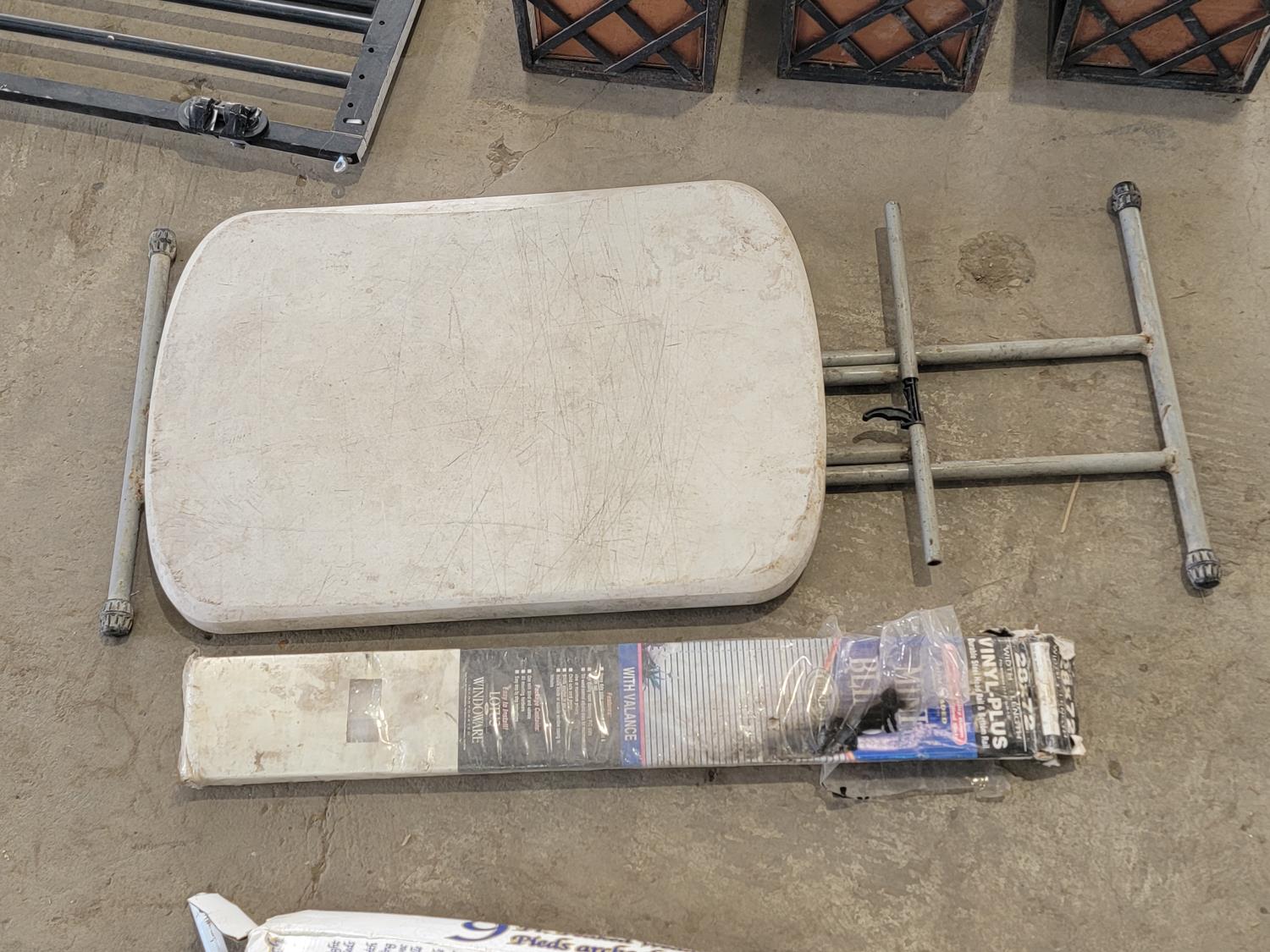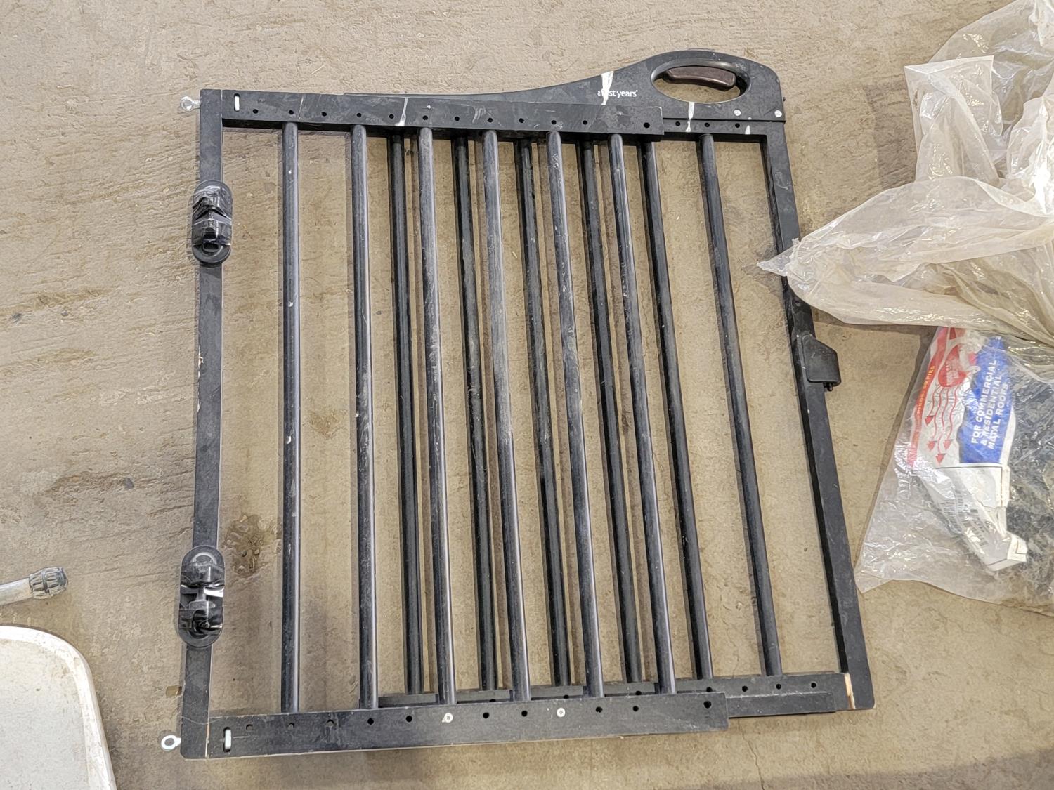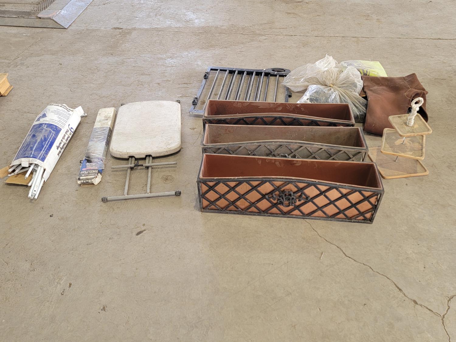 (3) flower boxes, baby gate, wedding arch, rain gutter guard, hip waders, mini blinds