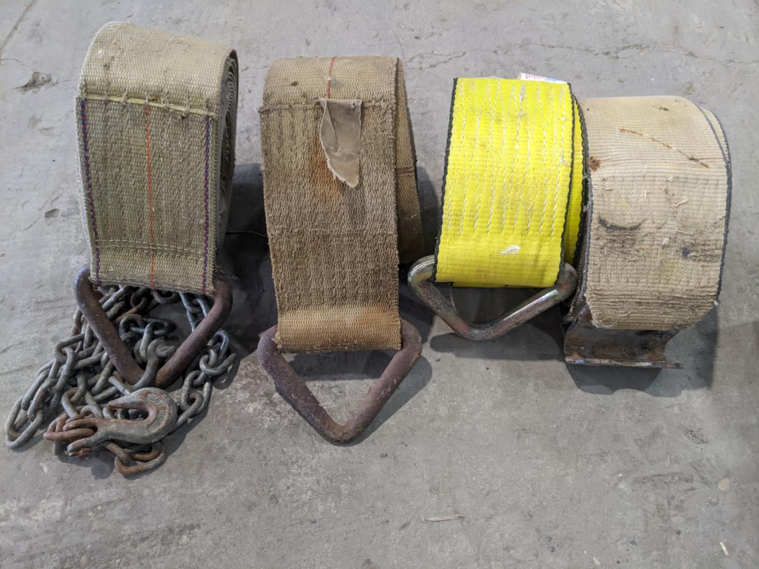 (10) 4 inch straps, (2) 4 inch ratchet straps, (3) 2 inch ratchet straps, (2) 2 inch ratchet straps