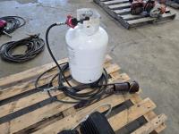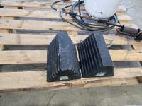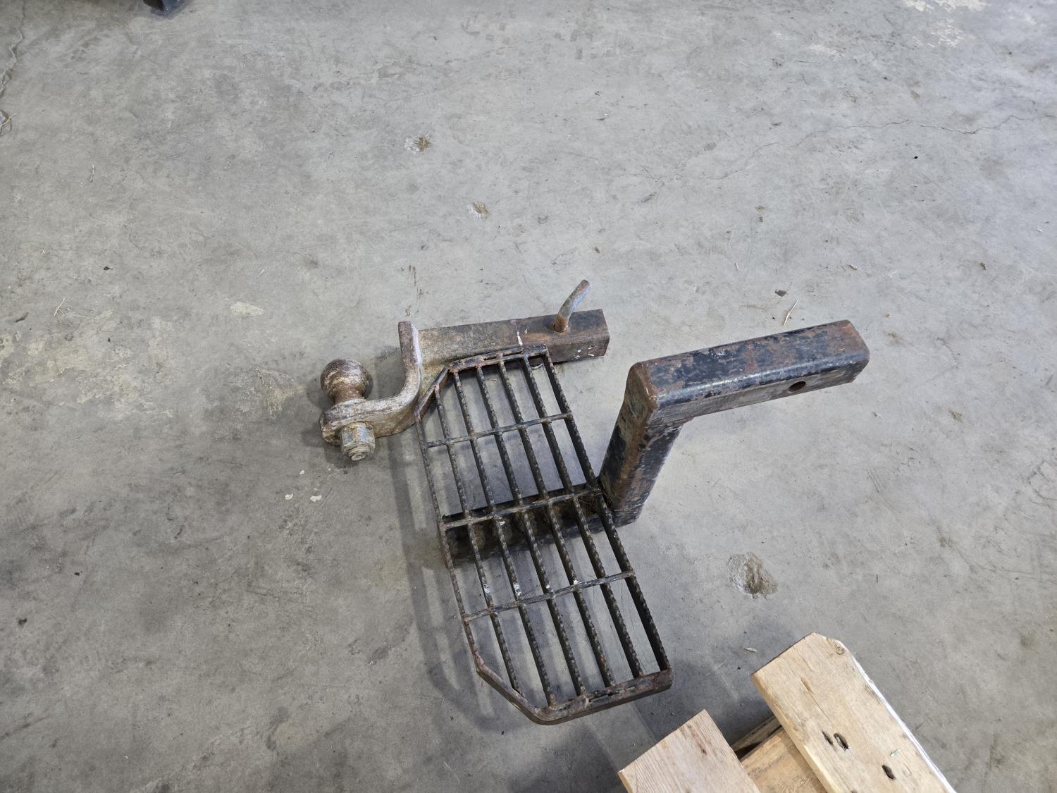 Propane bottle with tiger torch, heavy duty booster cables, set of wheel chocks, (2) shovels, receiver step, receiver hitch