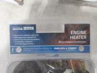 (13) block heater plugs, (15) 4 ft long shrink tubes, qty of 5 inch diameter amber lens covers, (4) eye shield guards, 3/8 inch stainless steel reflector nozzle, lock nut for angle grinder