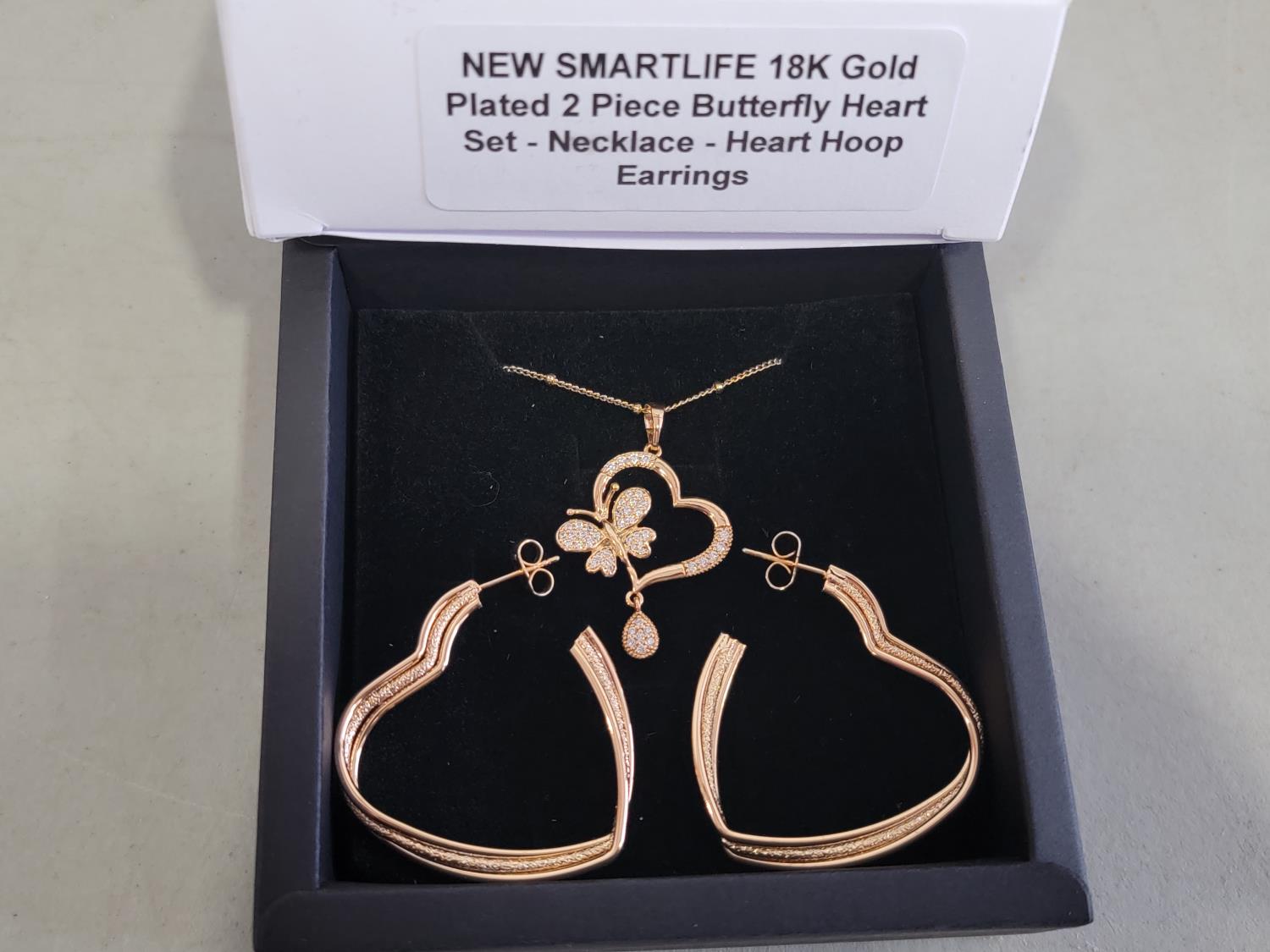 1874 Smartlife 18K Gold Plated 2 Piece Butterfly Heart Set (Unused)