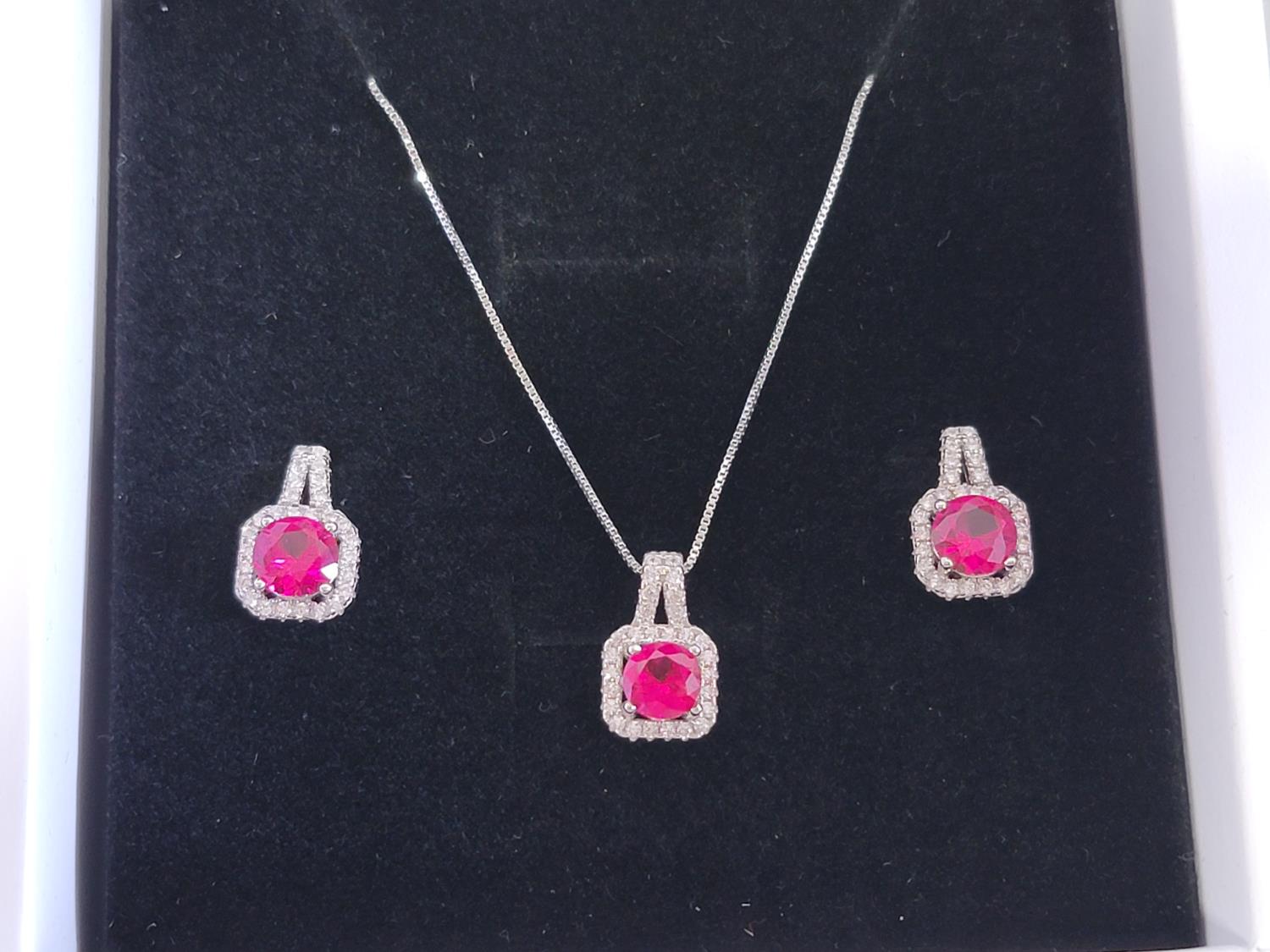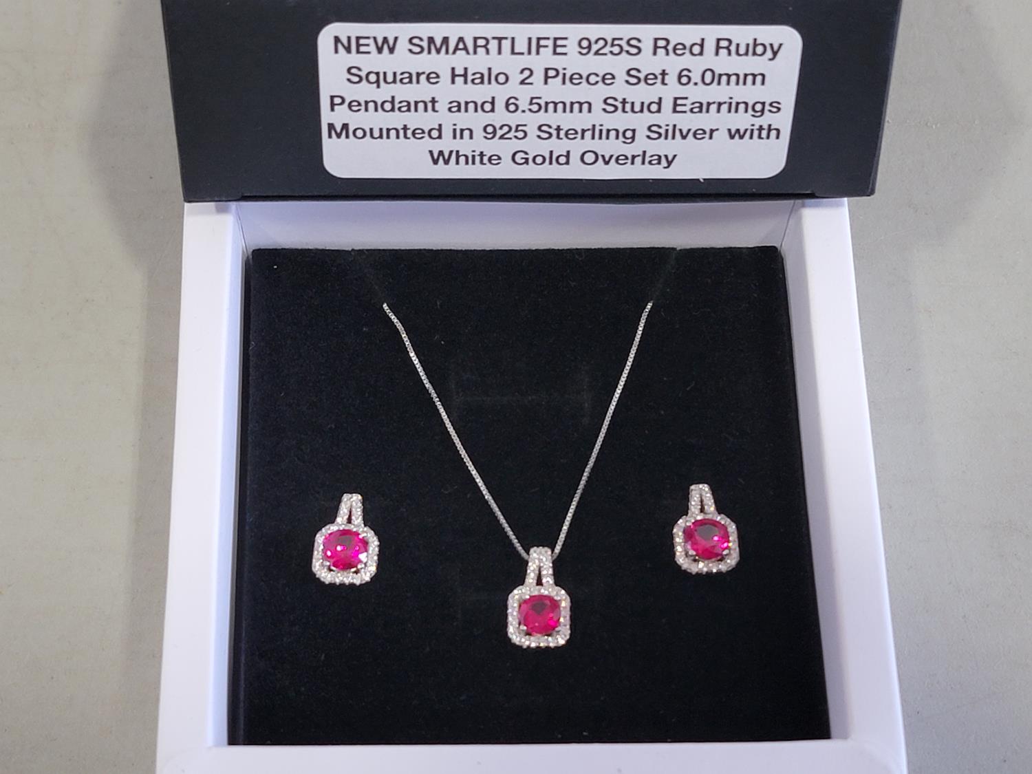 1885 Smartlife 925S Red Ruby Square Halo 2 Piece Set (Unused)