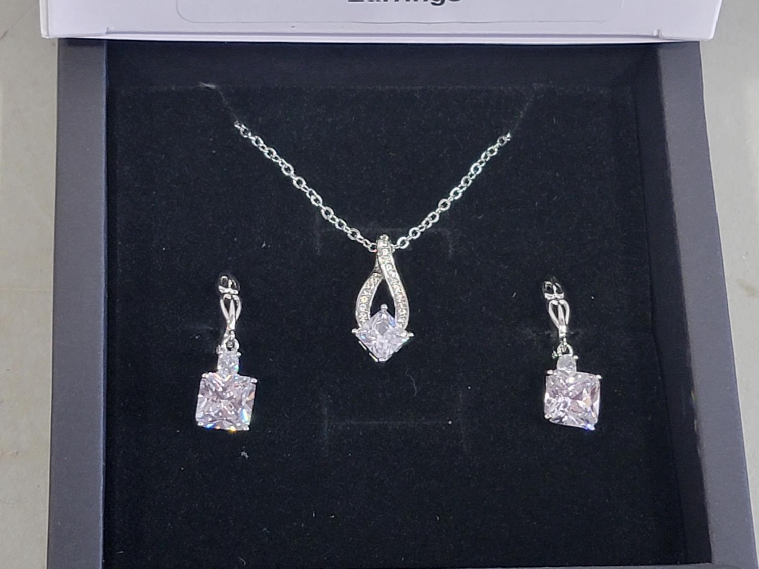 Necklace, princess dangle earrings