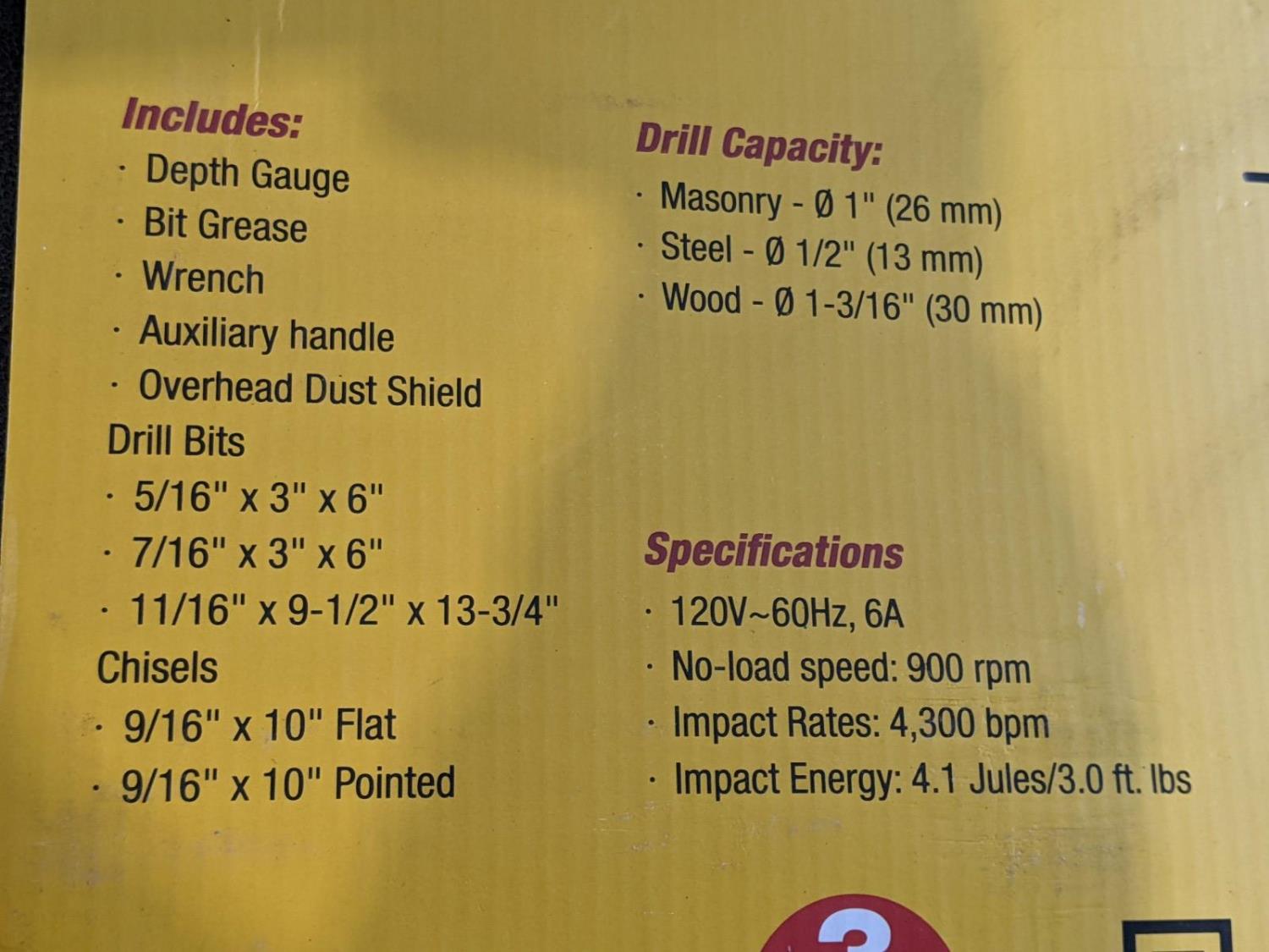 120V, no-load speed 900 RPM, impact rates 4300 bpm