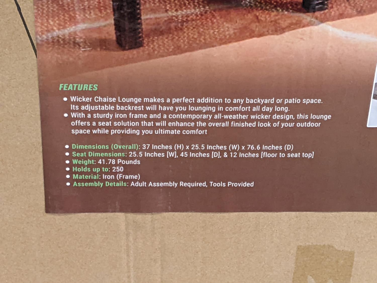 1343 Wicker Patio Chaise Lounger (Unused)