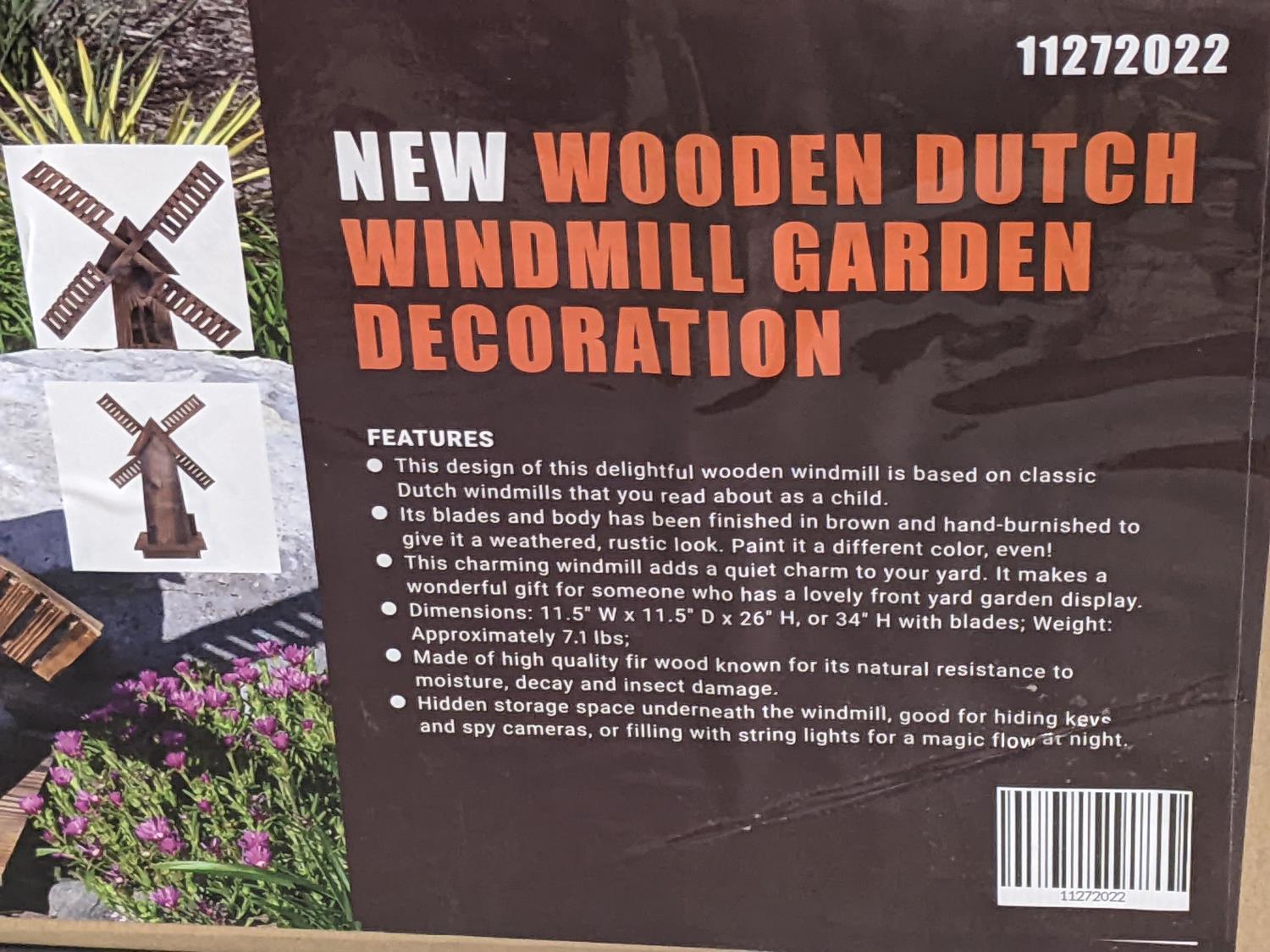 1370 Wooden Dutch Windmill Garden Decoration (Unused)