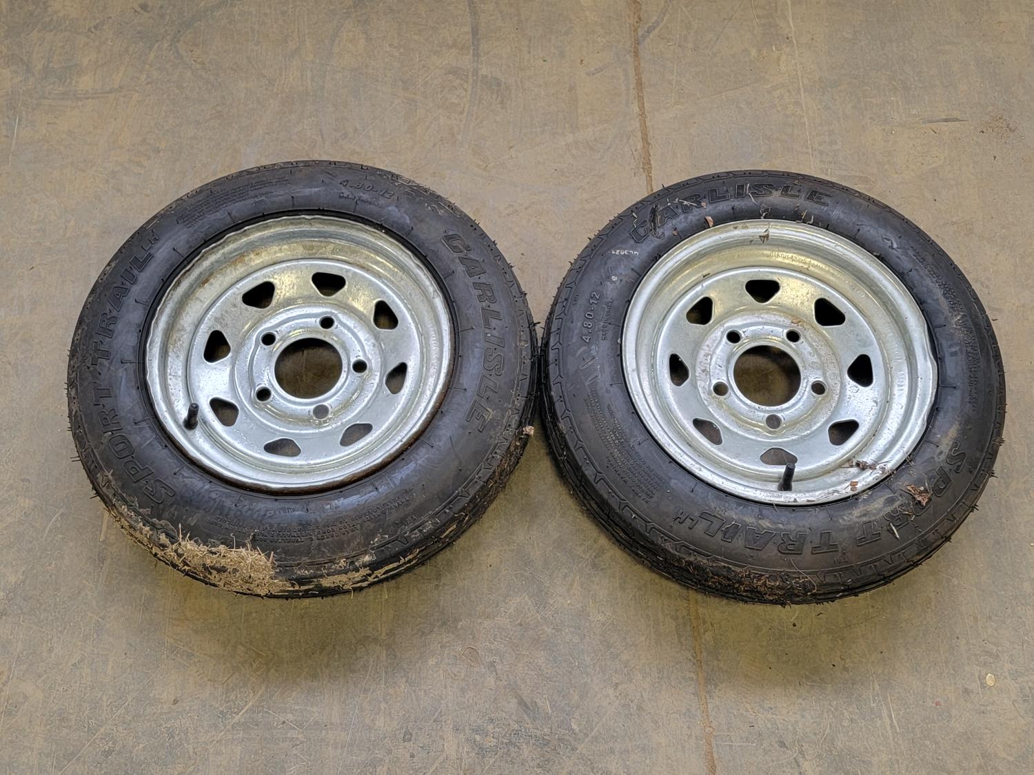 5018 (2) Carlisle Sport Trail 4.80-12 Tires On 5 Bolt Rims