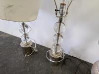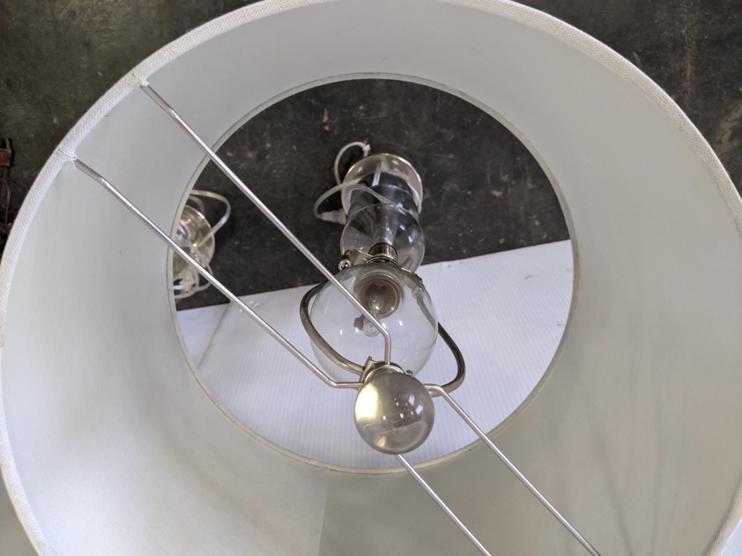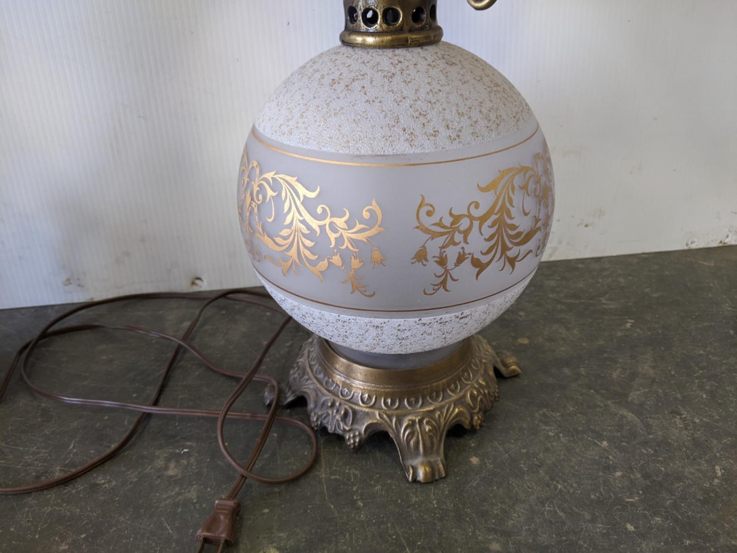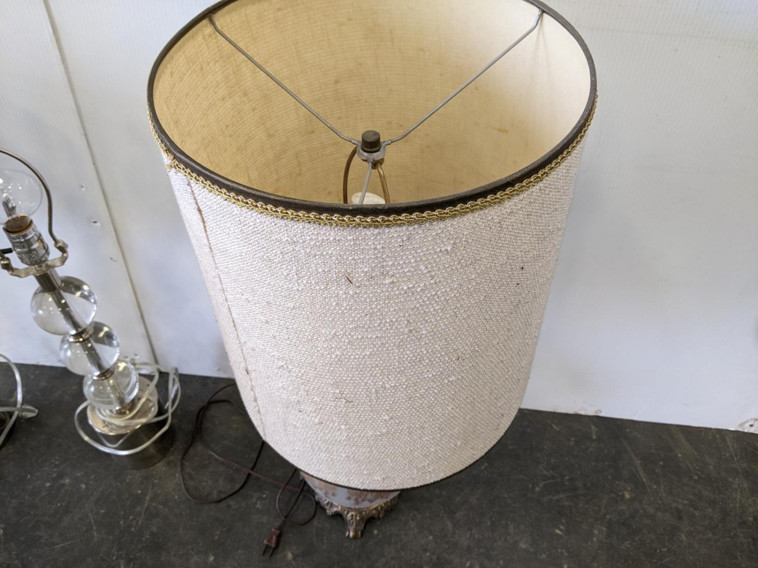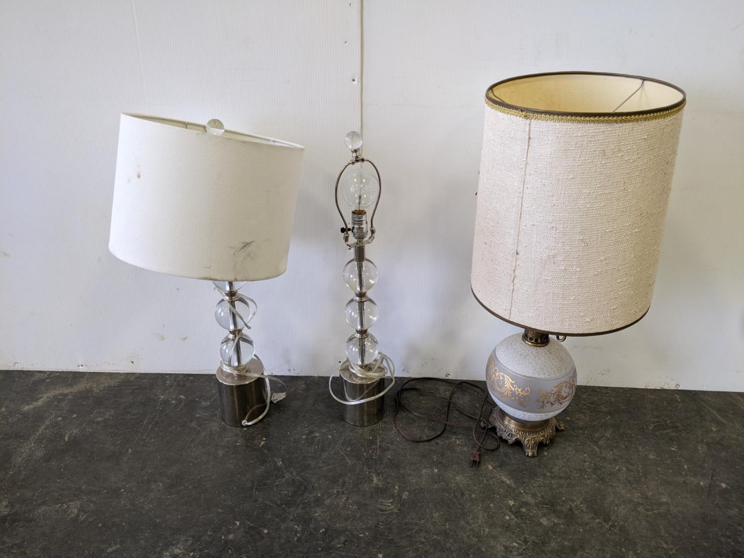 (2) matching glass lamps 28 inch h bases (one missing shade), (1) vintage lamp 31 inch h
