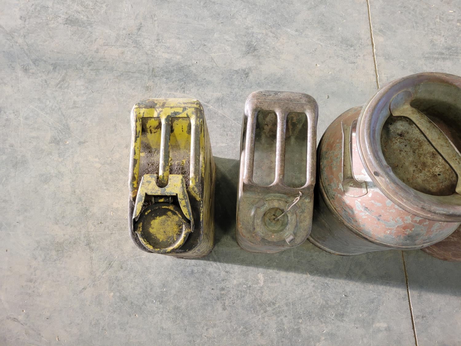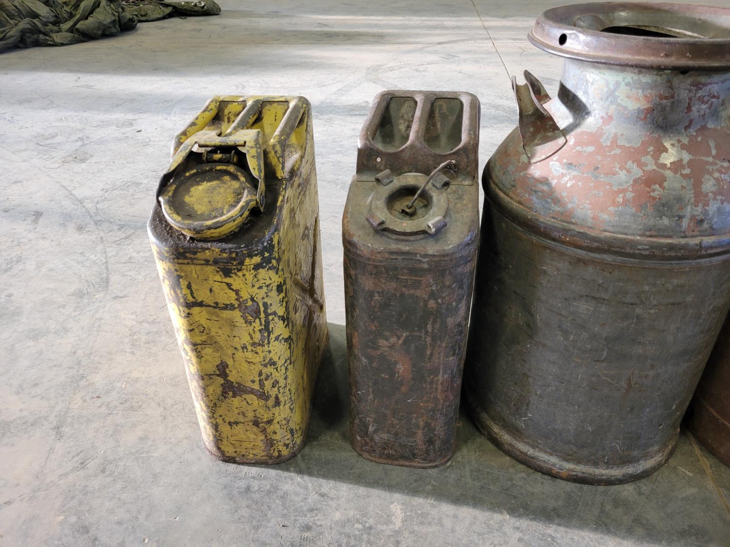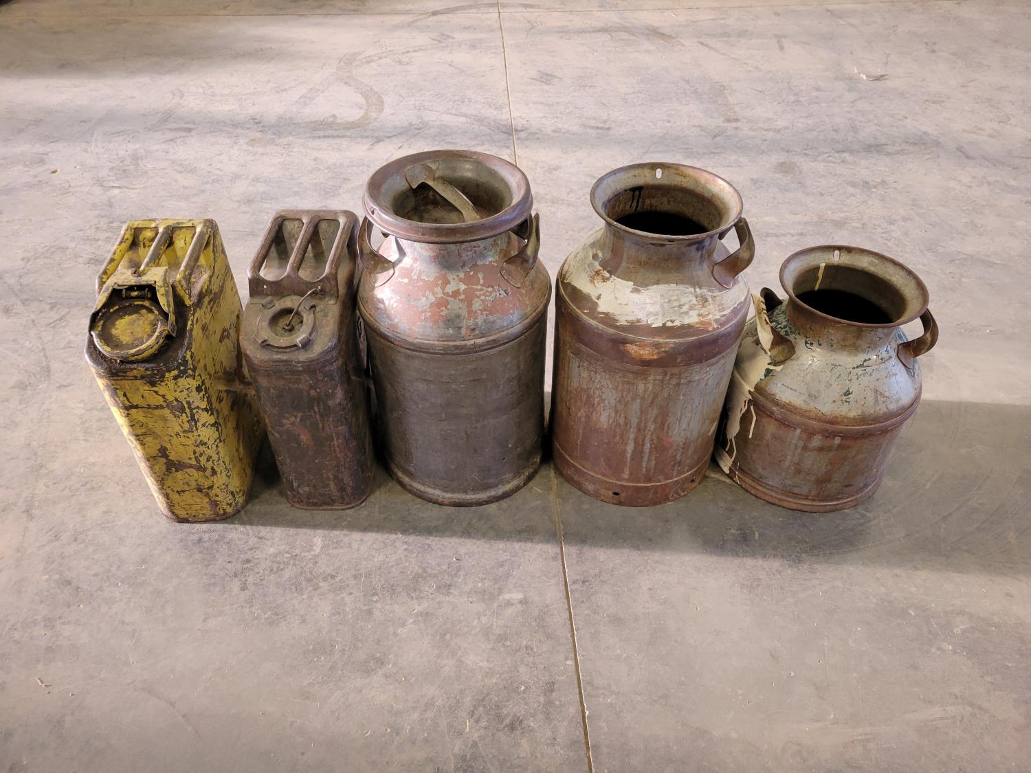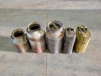 5392 (3) Vintage Cream Cans and (2) Vintage Gas Cans