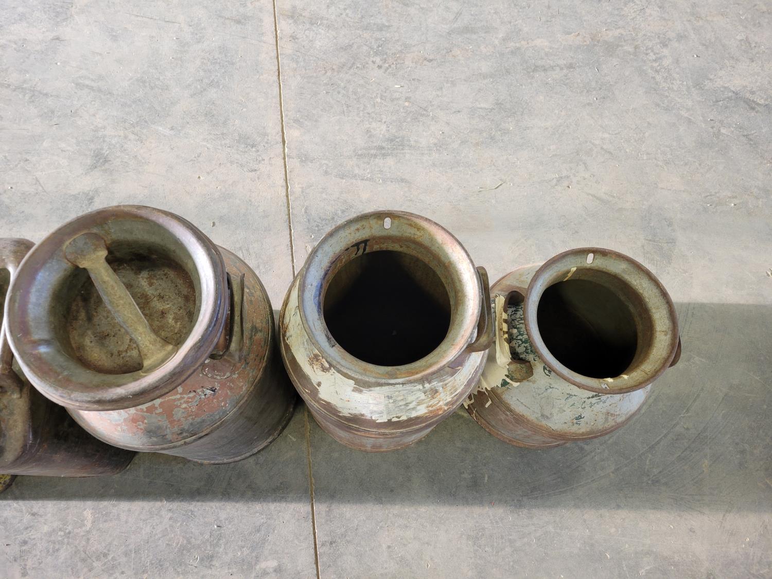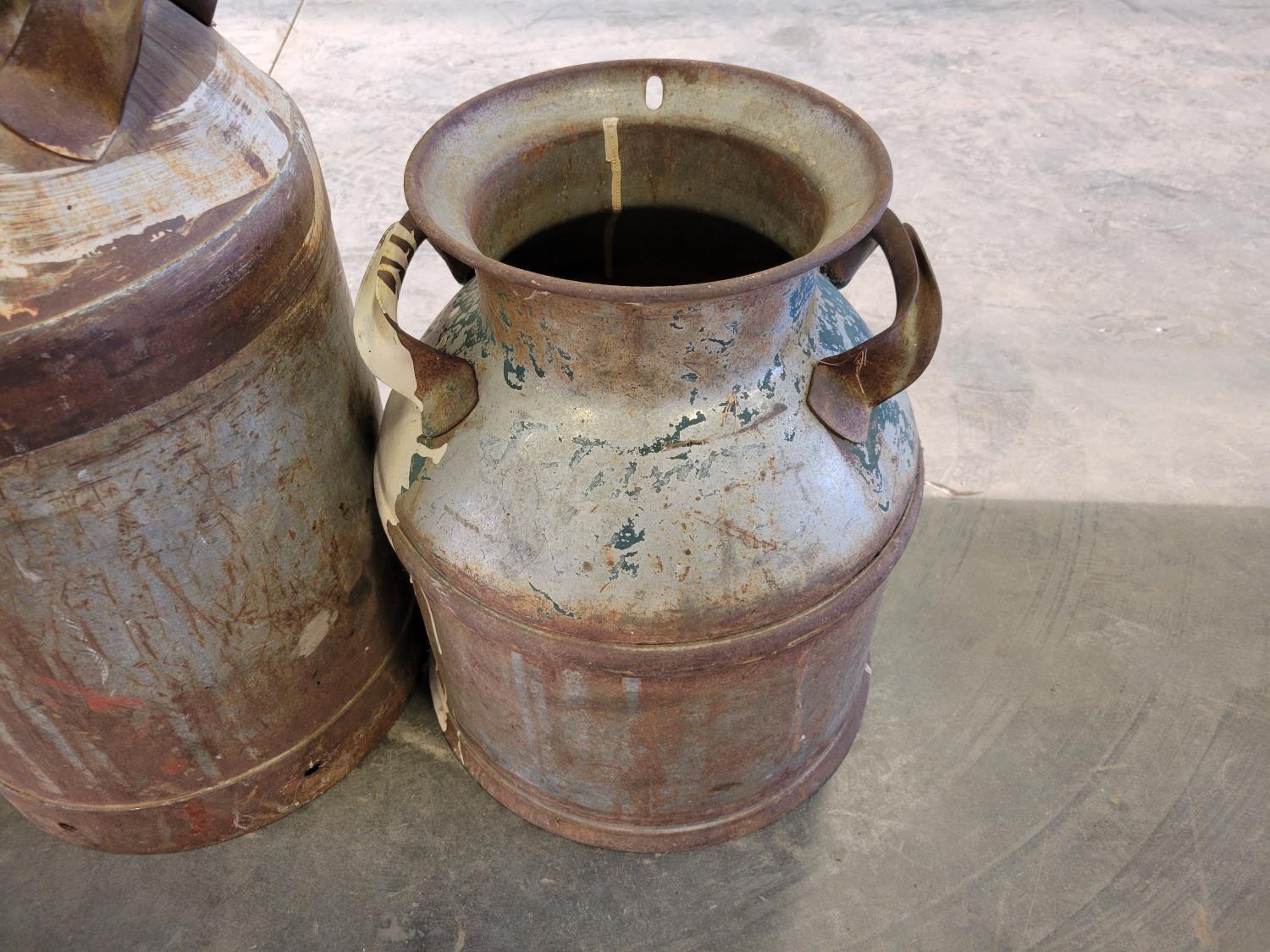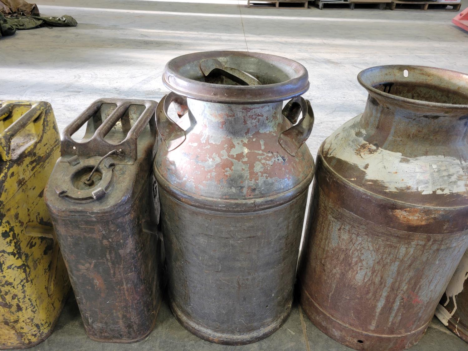 5392 (3) Vintage Cream Cans and (2) Vintage Gas Cans