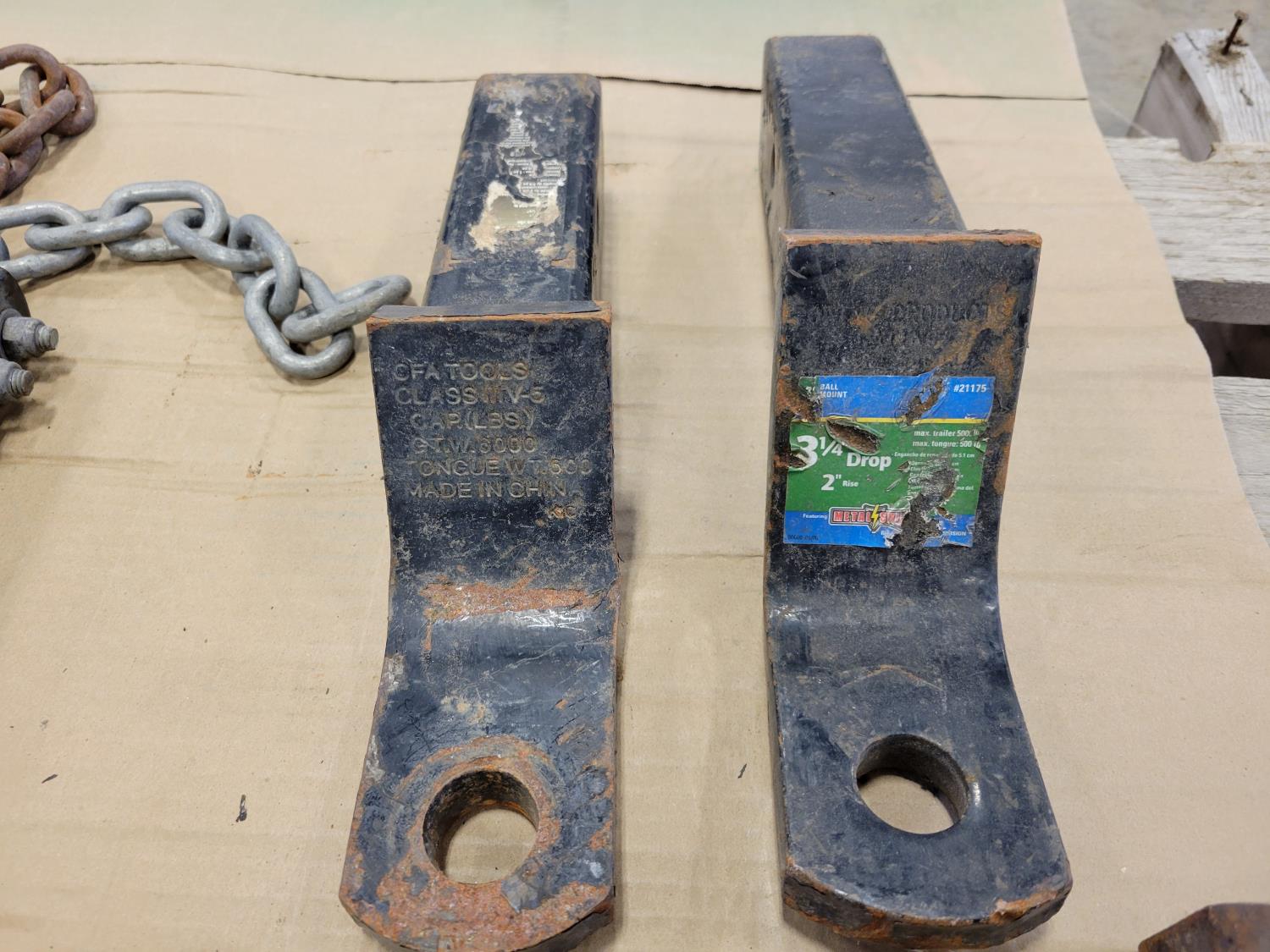 5402 (4) Sway Bars, (2) Drop Hitches, 24 Inch Receiver Hitch, 4 Ft Sling, Jack-All