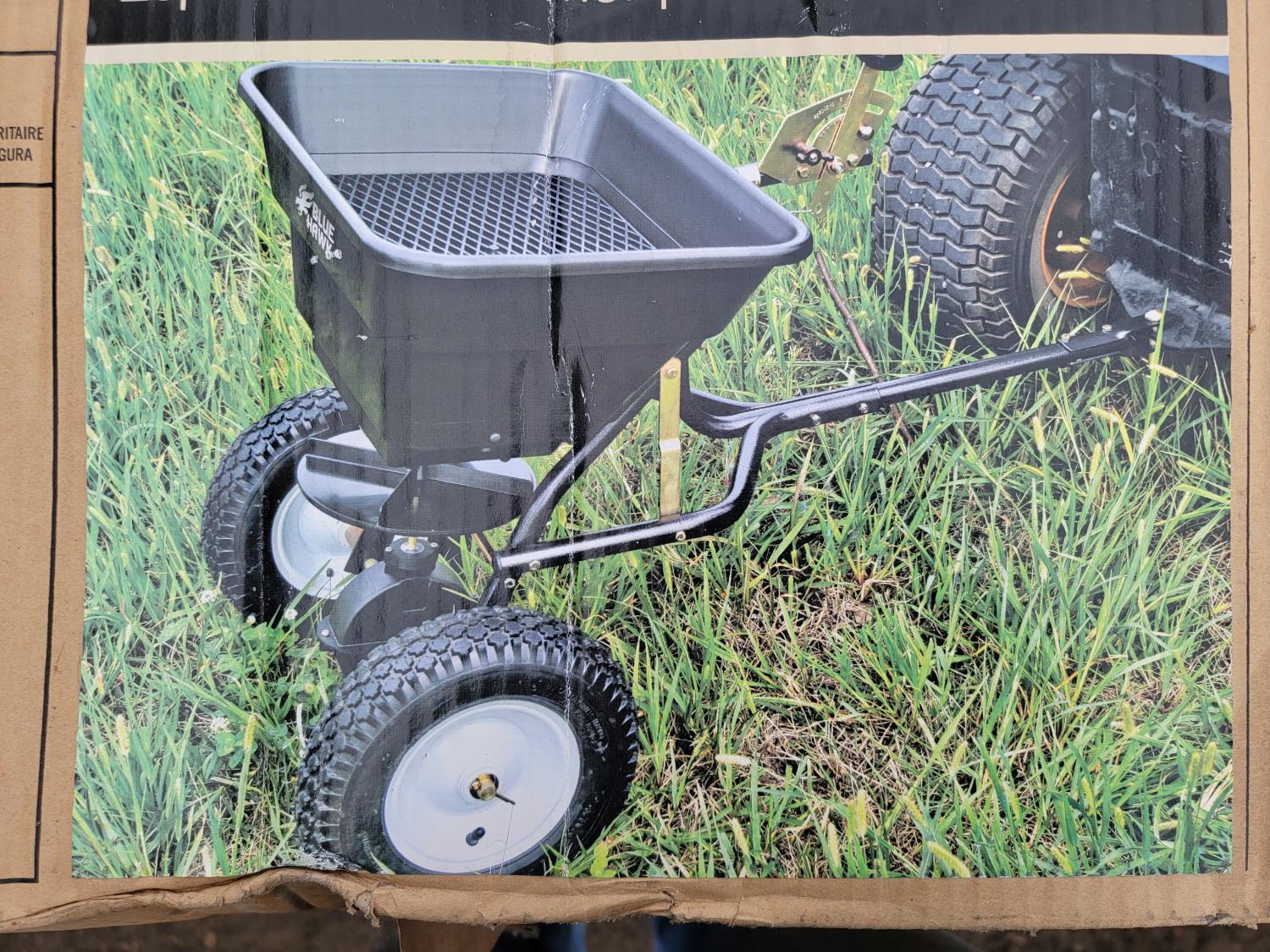 5367 Blue Hawk 80B Tow Behind Fertilizer Spreader (Unused)