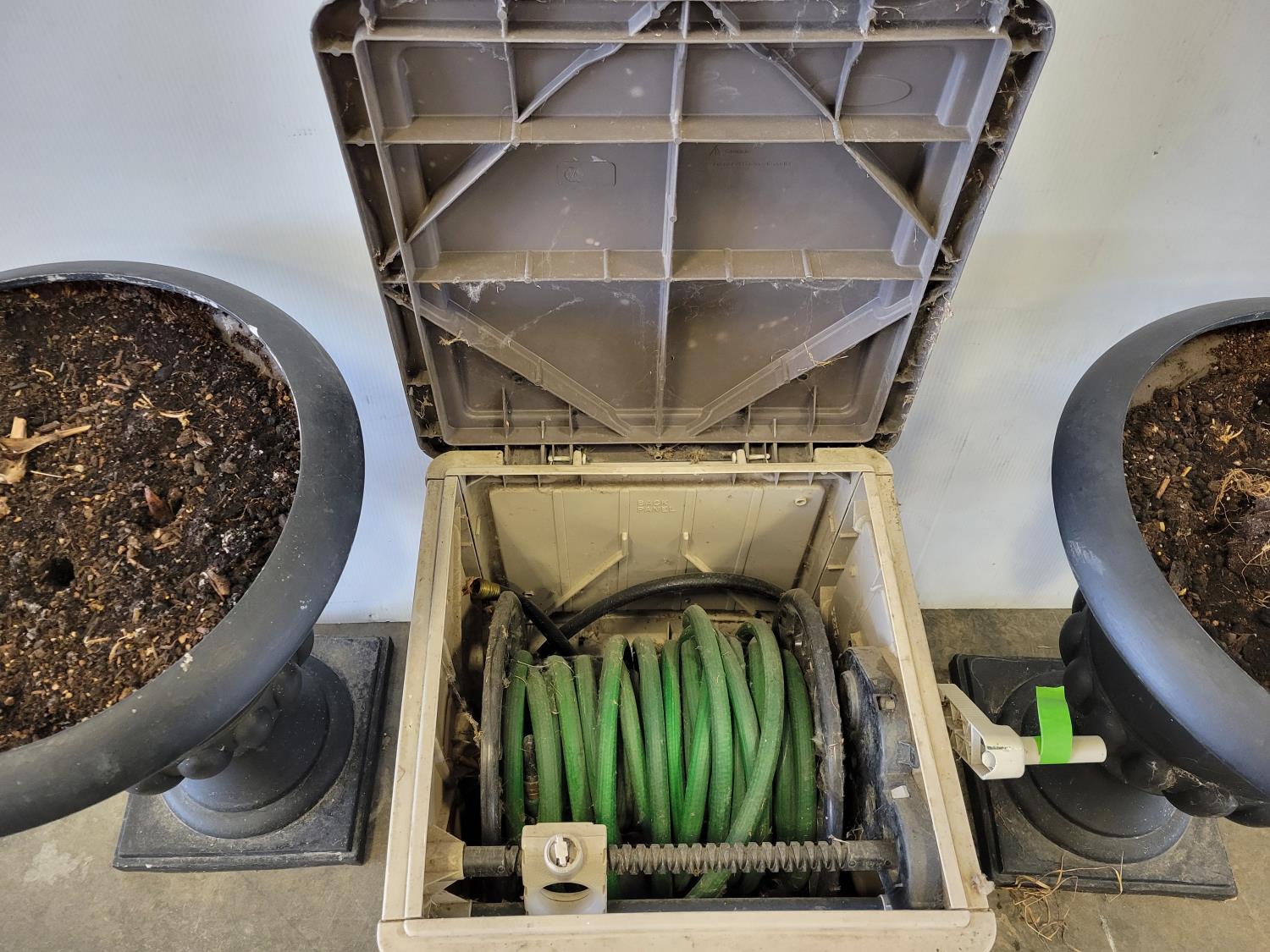 5323 Deck Hose Reel Box with Qty of Hose, (2) Planters and Ladder Game