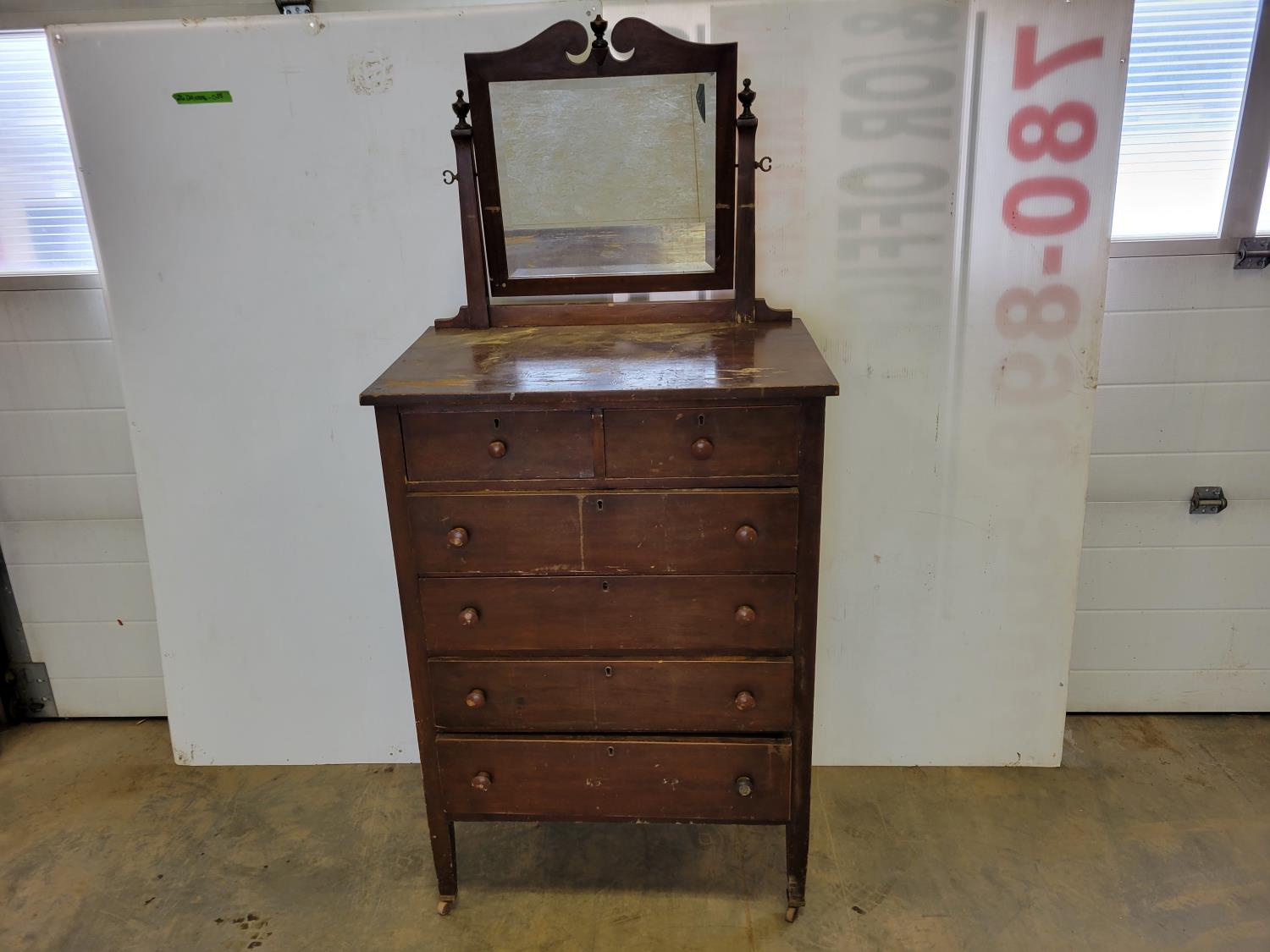 32 inch w x 21 inch d x 46 inch h, mirror 23-1/2 inch h