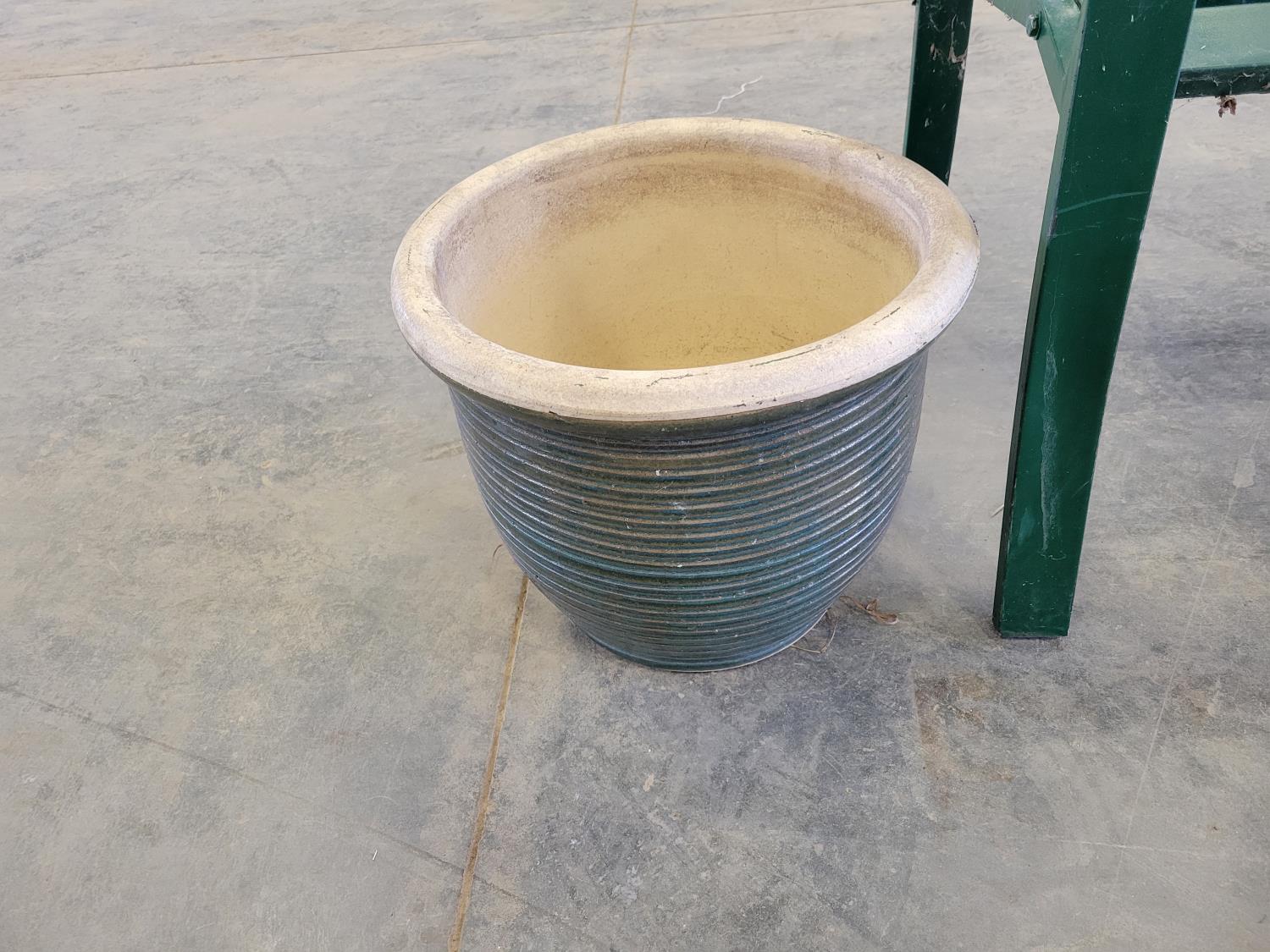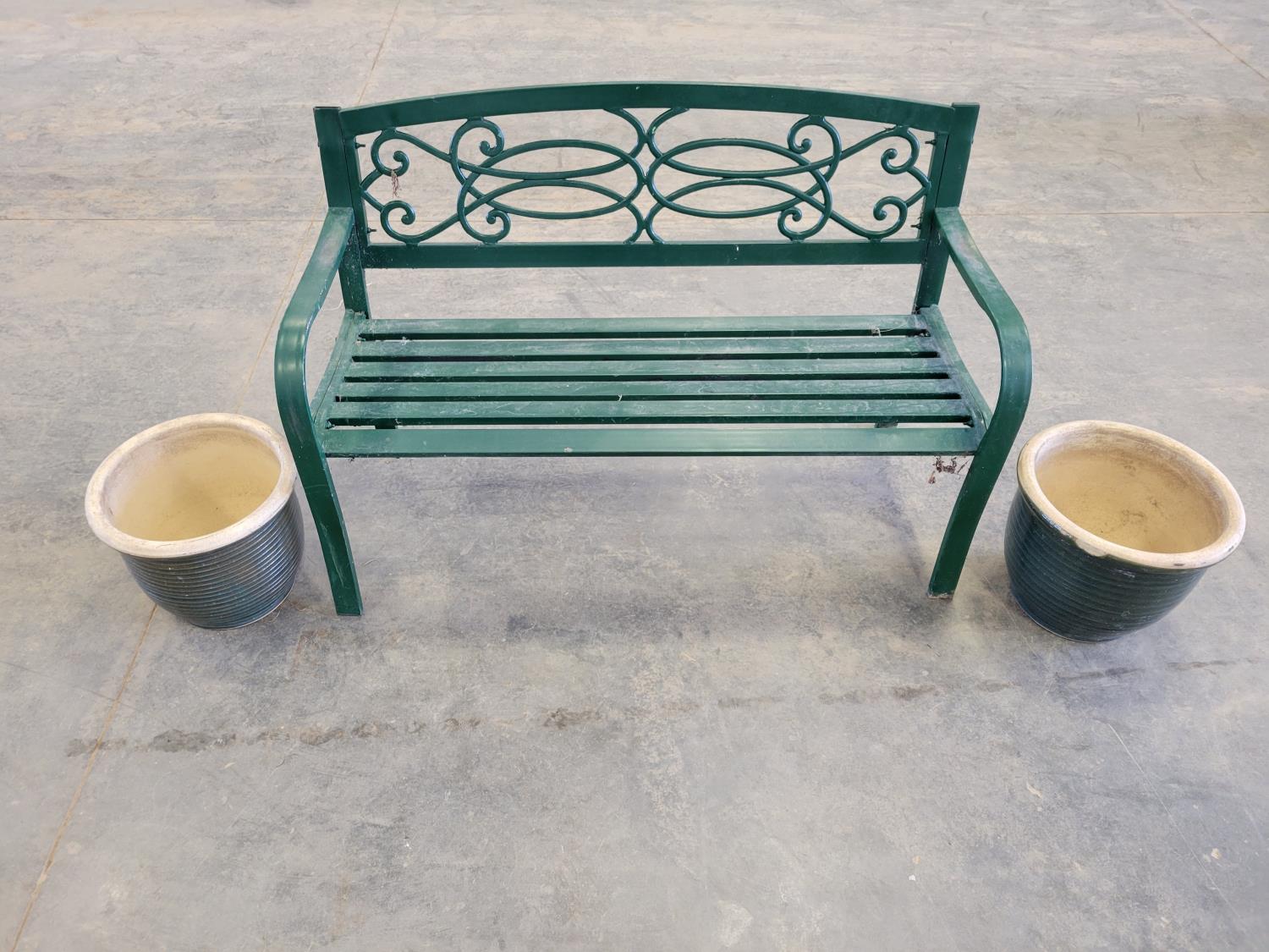 5325 Garden Bench and (2) Ceramic Planters