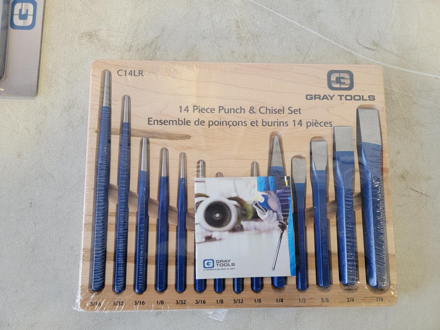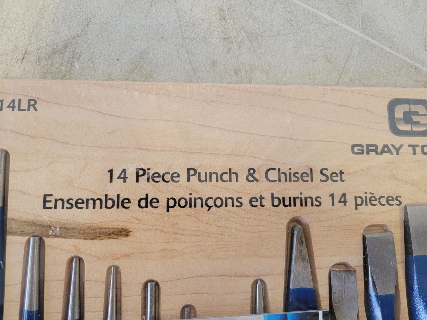 5204 Gray Tools 14 Piece Punch and Chisel Set & 2 Piece Adjustable Wrench Set (Unused)
